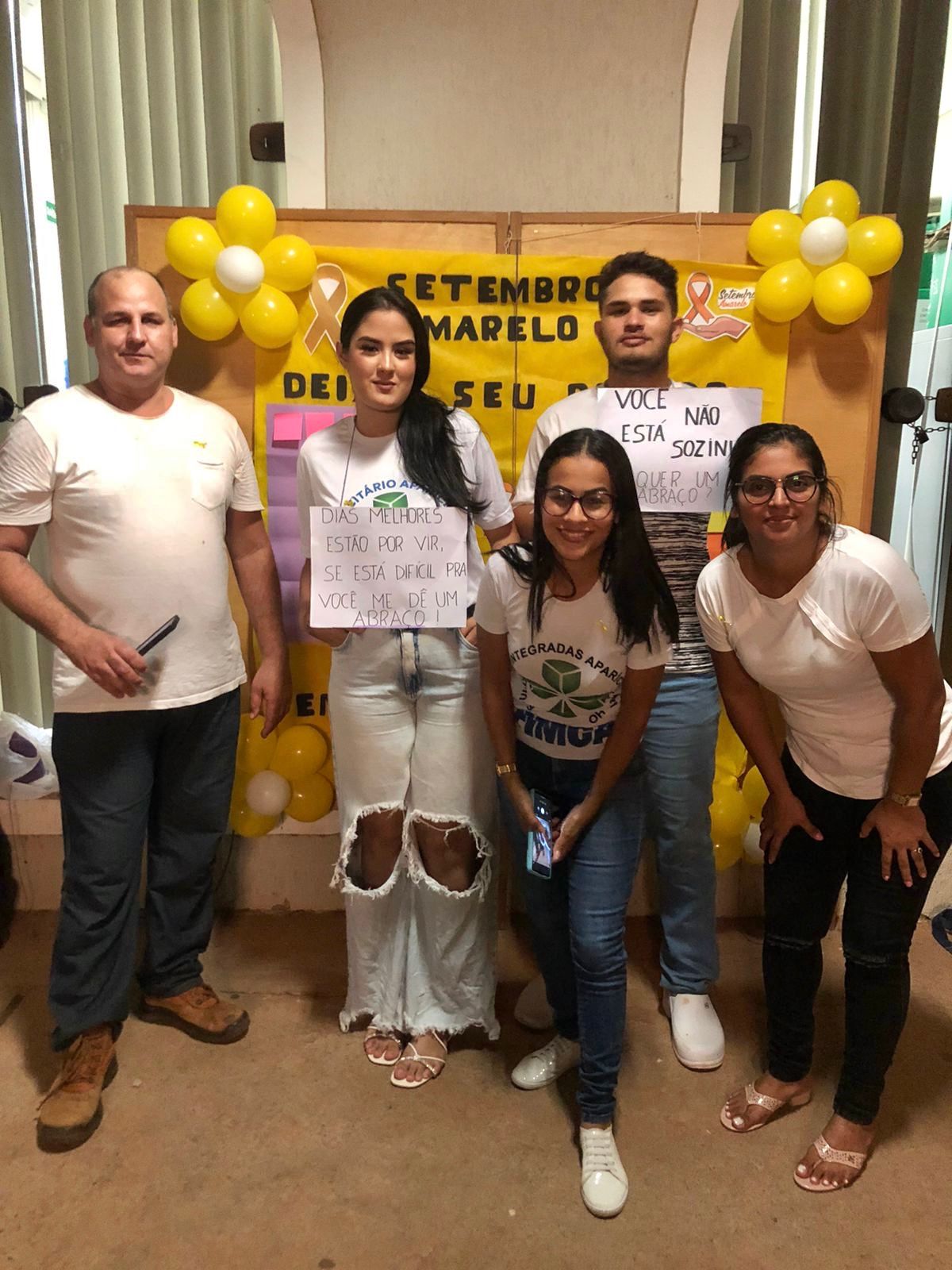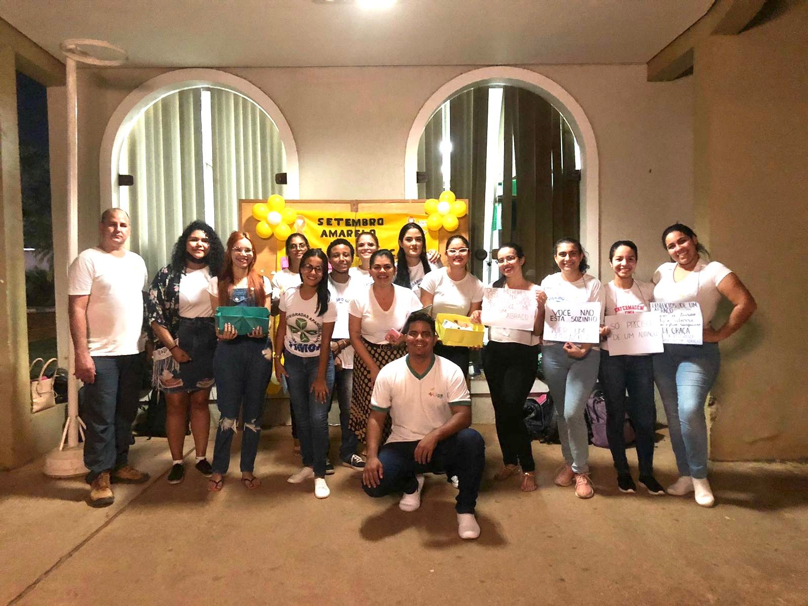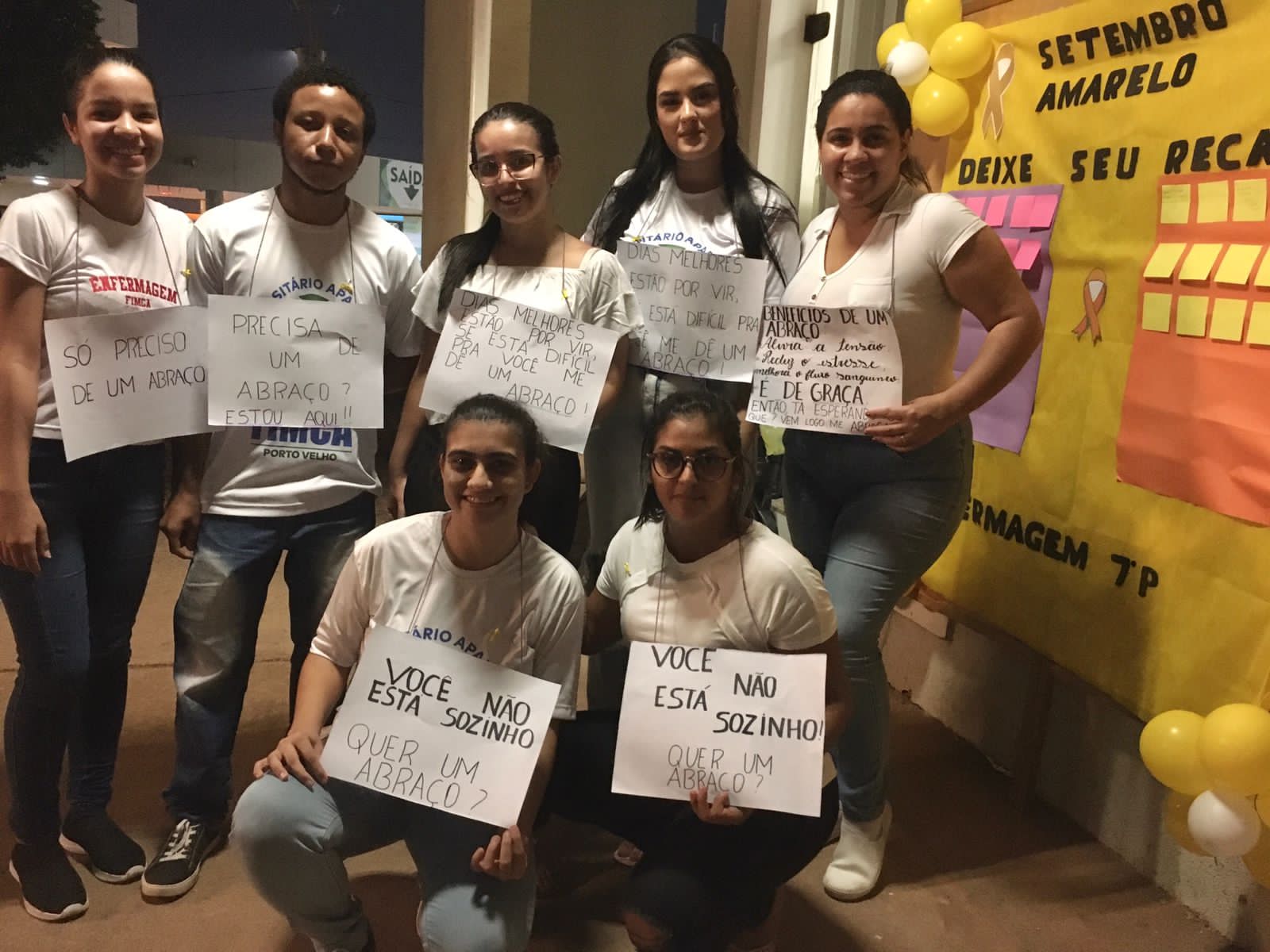 Nesta quarta (28), alunos do 7º período do curso de Enfermagem do Centro Universitário Aparício Carvalho organizaram um mural em alusão ao Setembro Amarelo. Os alunos que passavam podiam deixar mensagens motivacionais. A atividade está relacionada à disciplina se Saúde Mental e foi coordenada pela professora Camila Monique.