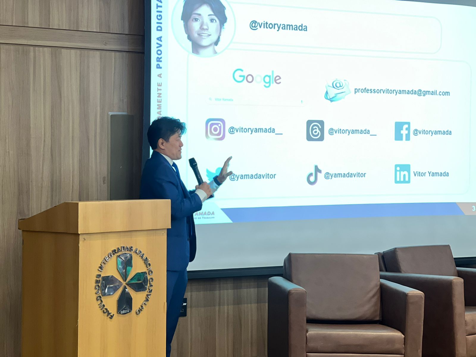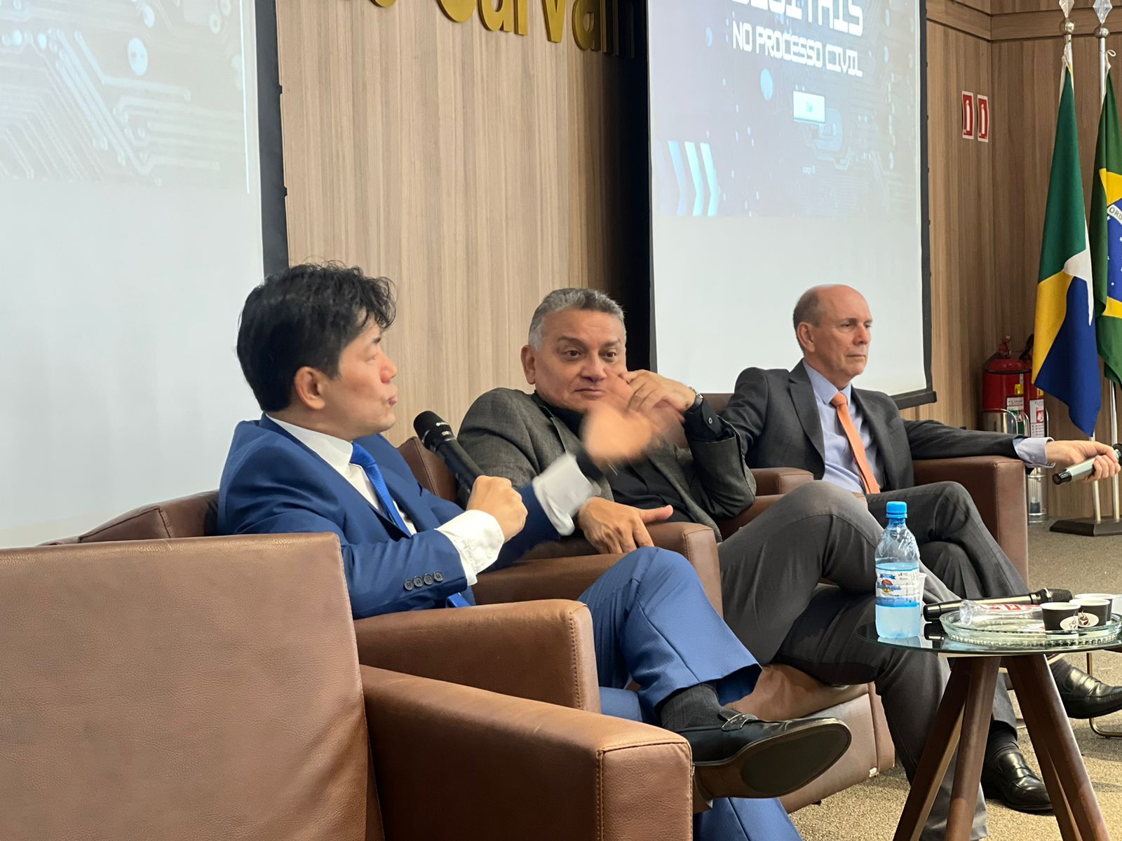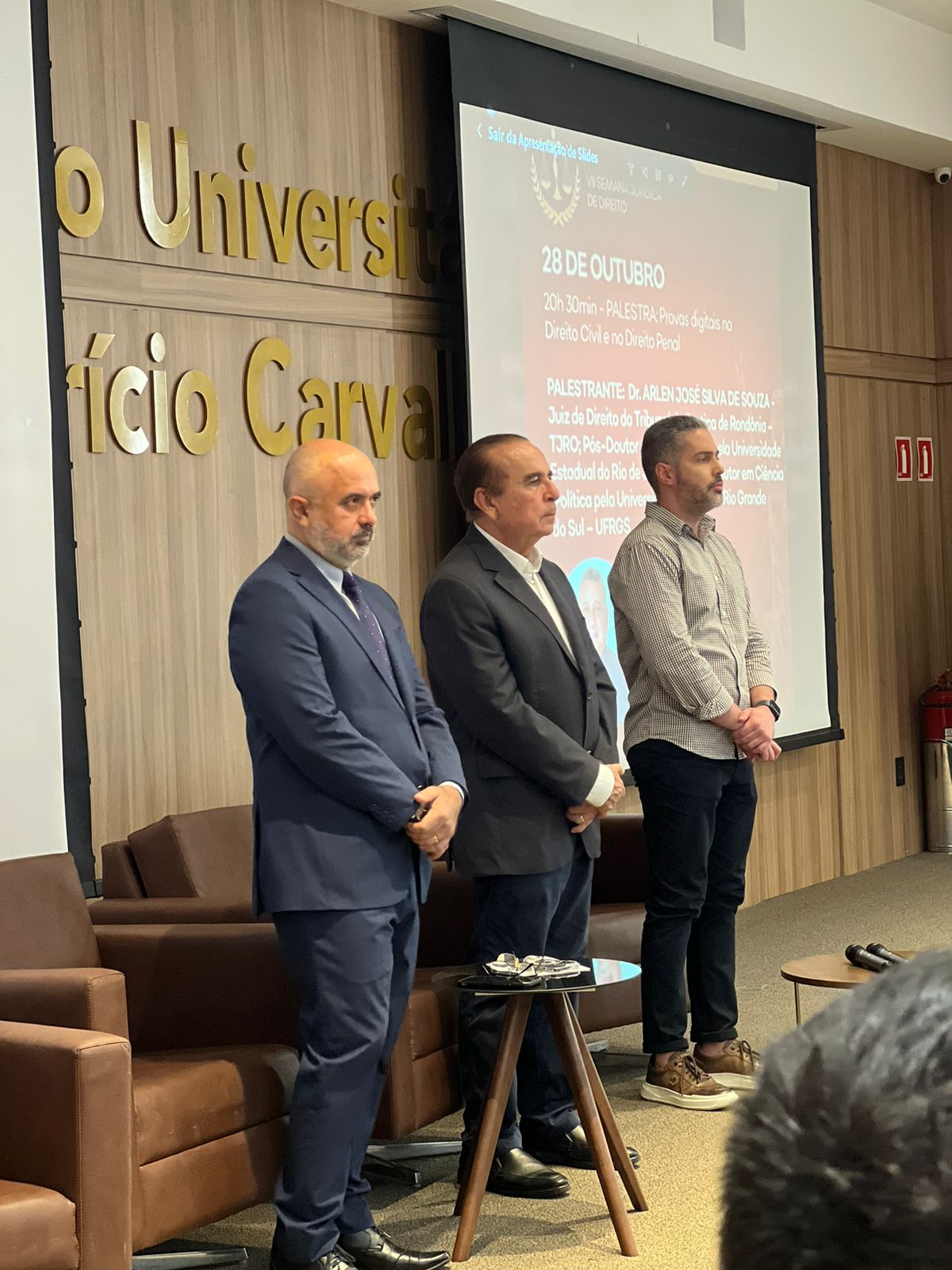 A primeira palestra da noite foi ministrada pelo Dr. Vitor Leandro Yamada, Juiz do Trabalho no TRT da 14ª Região, abordando o tema “Como Produzir Validamente a Prova Digital no Direito”. O magistrado trouxe uma visão prática e atualizada sobre a coleta e validação de provas digitais, tema de extrema relevância no cenário jurídico atual. Em seguida, o Dr. Arlem José Silva de Souza, Juiz de Direito do Tribunal de Justiça de Rondônia (TJRO), explorou o uso das provas digitais no Direito Civil e Penal, abordando questões legais e processuais que envolvem a preservação da integridade e confiabilidade dessas provas.