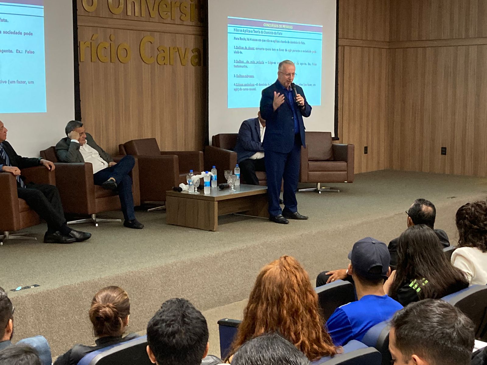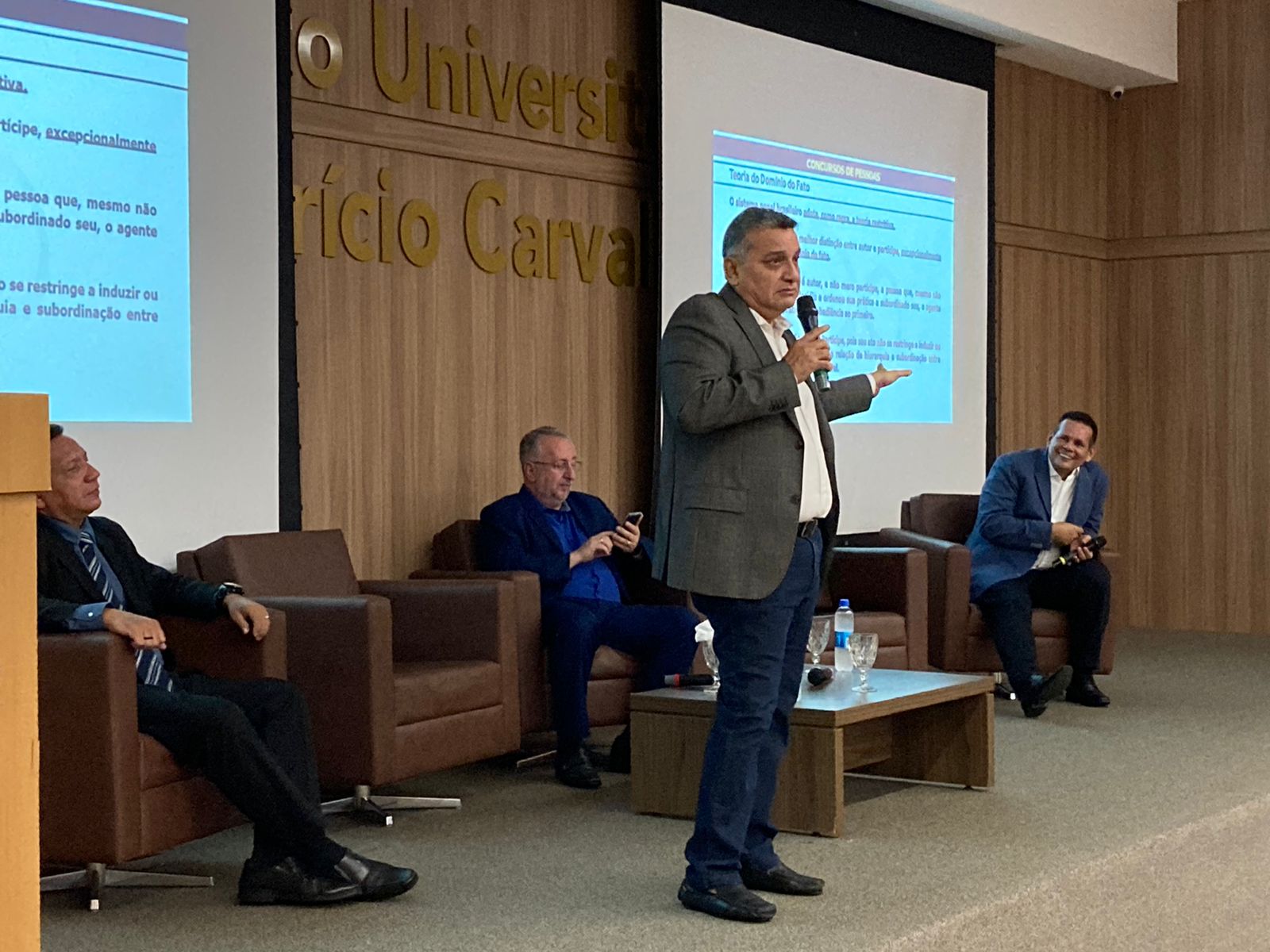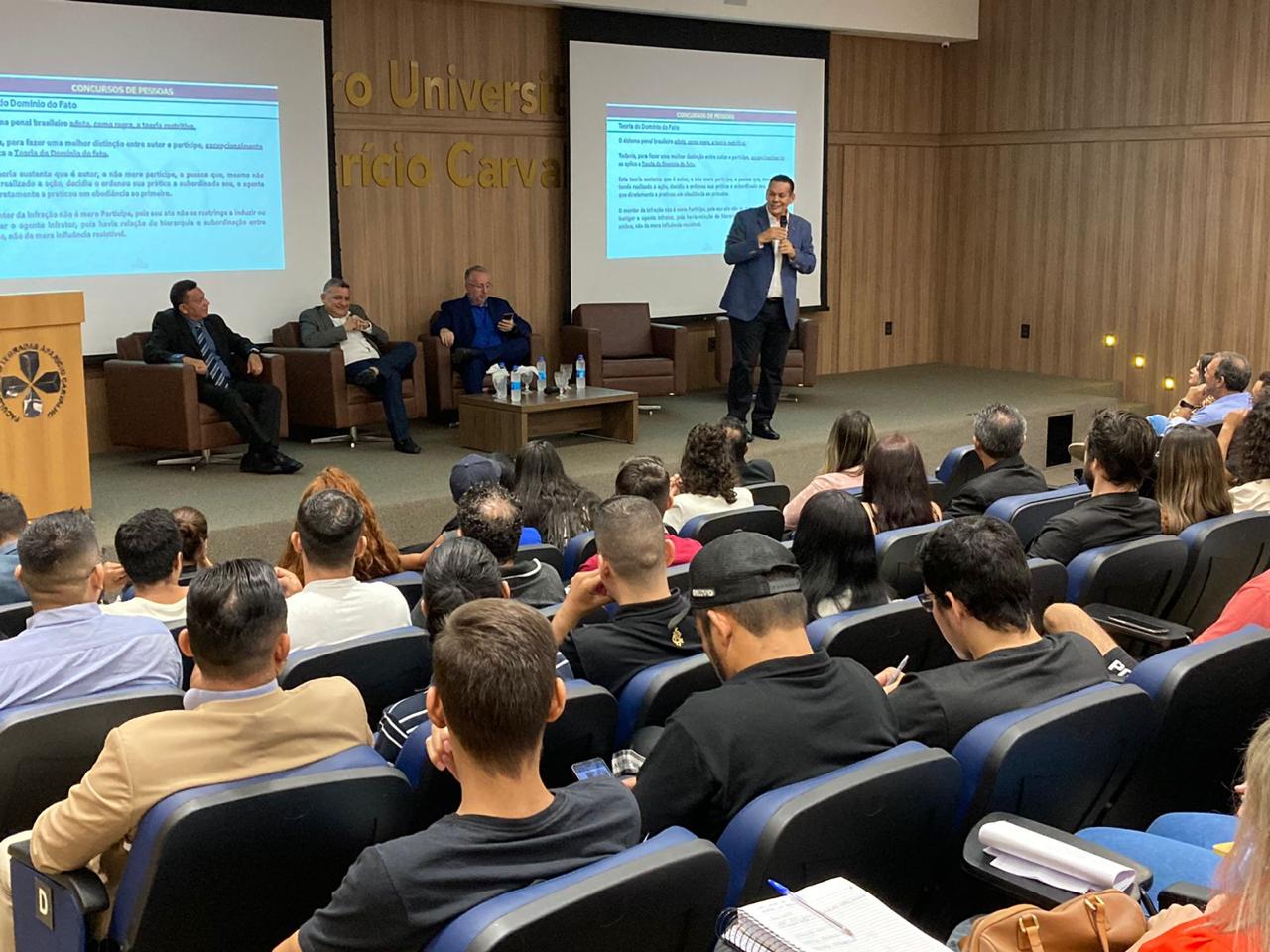 O tema foi o Concurso de Pessoas, que descreve o ato de quando várias pessoas participam para a realização de uma infração penal. O evento aconteceu no anfiteatro Dra. Maria Sílvia Carvalho, na FIMCA, e contou com a participação de vários acadêmicos e professores, dentre ele o professor Josué Passos, coordenador adjunto do curso de Direito da FIMCA.