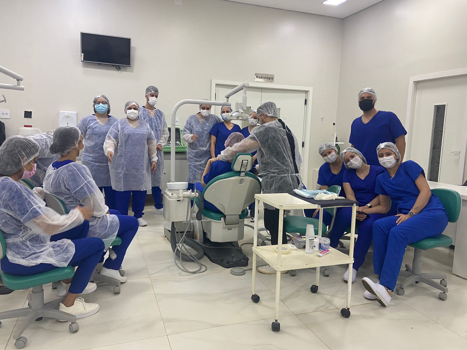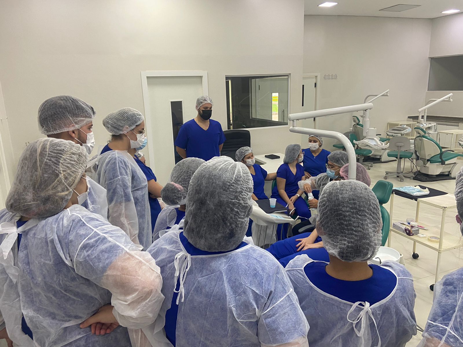 Acadêmicos do curso de Odontologia em aula de Microbiologia