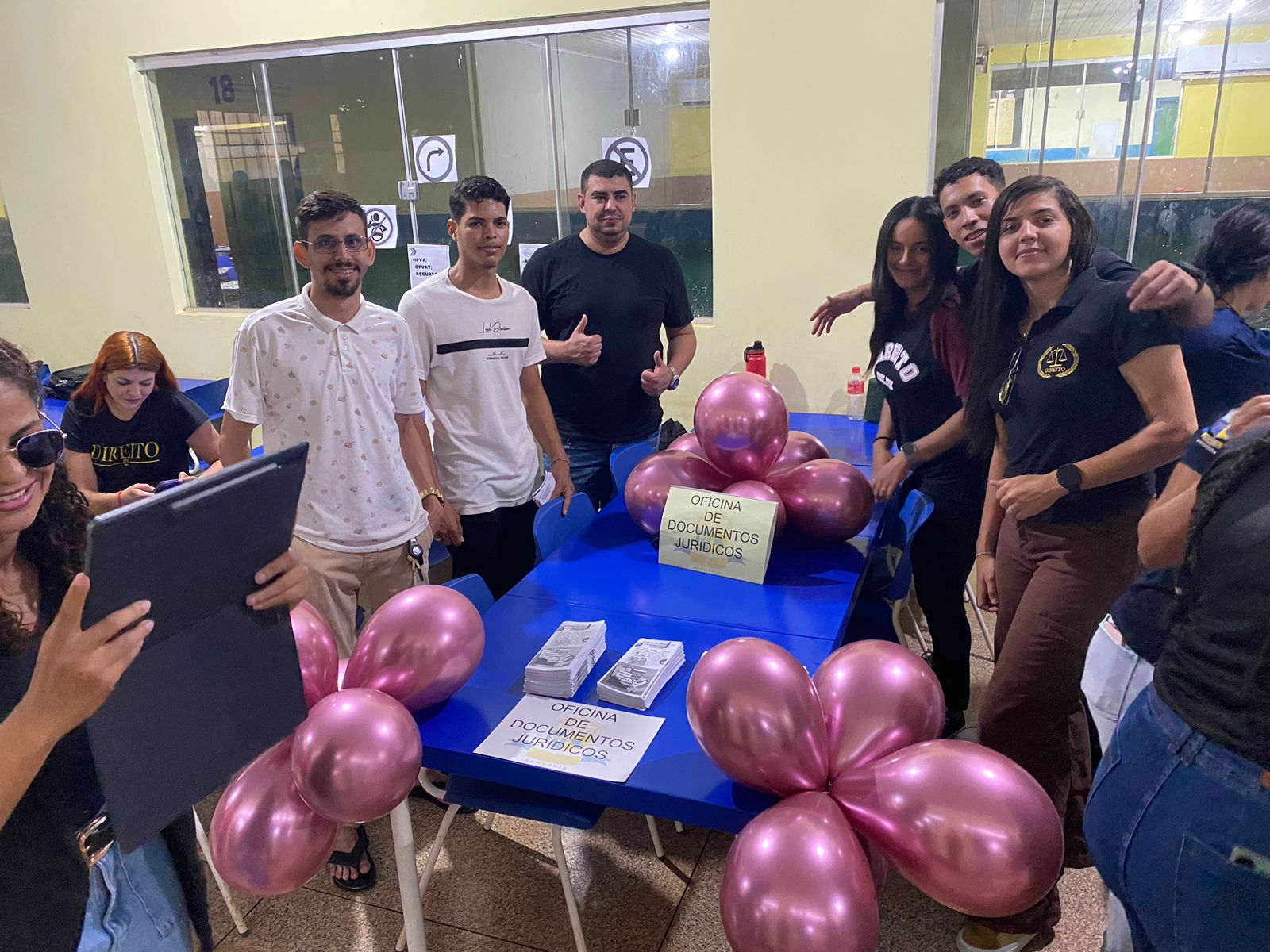 Os alunos do 2º período de Direito ofereceram orientações sobre direitos e deveres dos cidadãos, com ênfase nos direitos de idosos e crianças, além de auxiliar na emissão de documentos jurídicos básicos. Para promover bem-estar e sustentabilidade, também distribuíram cachorro-quente, refrigerante e mudas de plantas nativas à população presente.