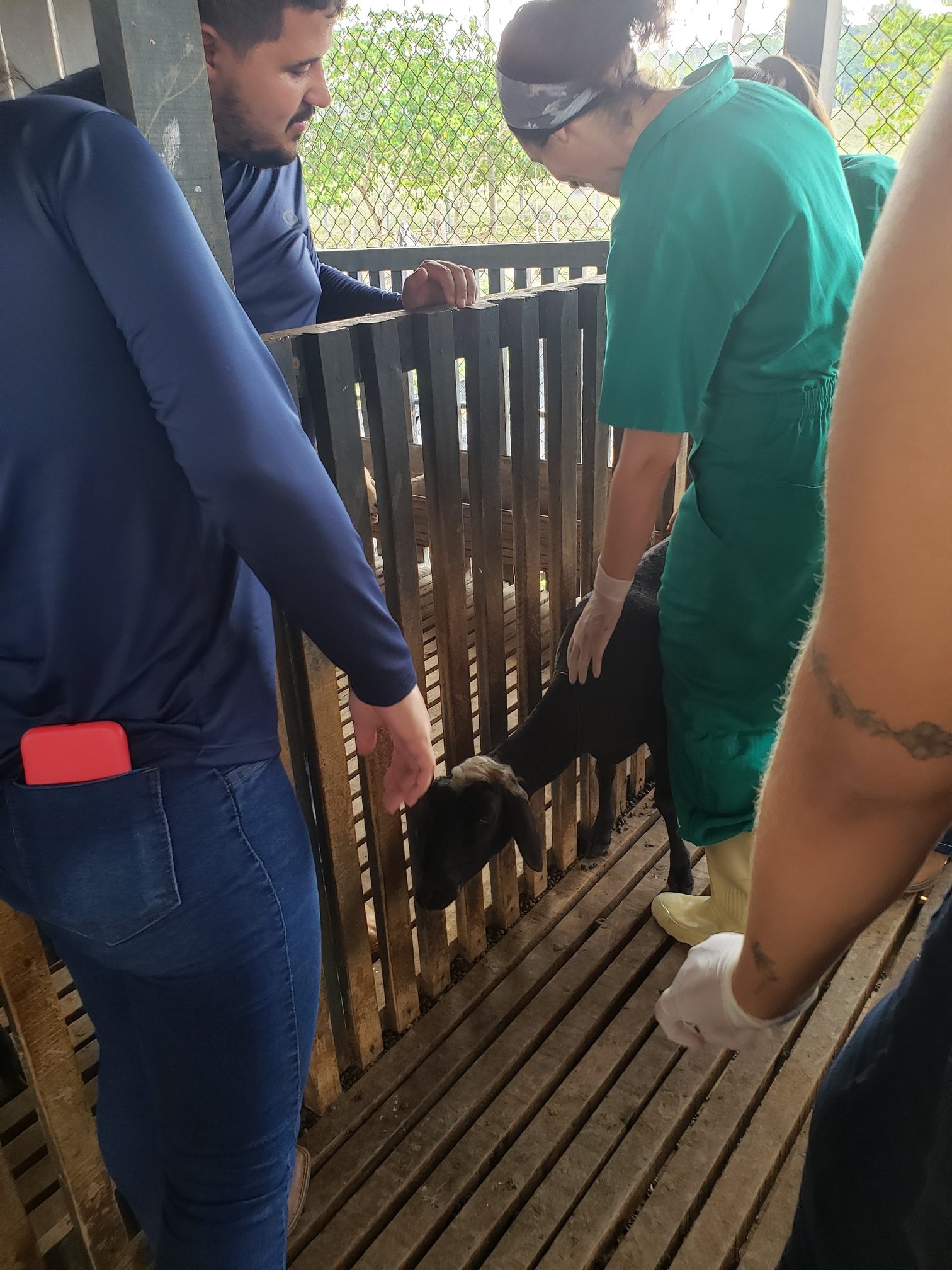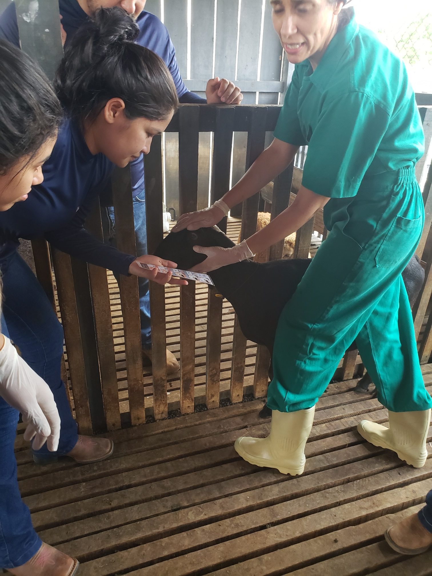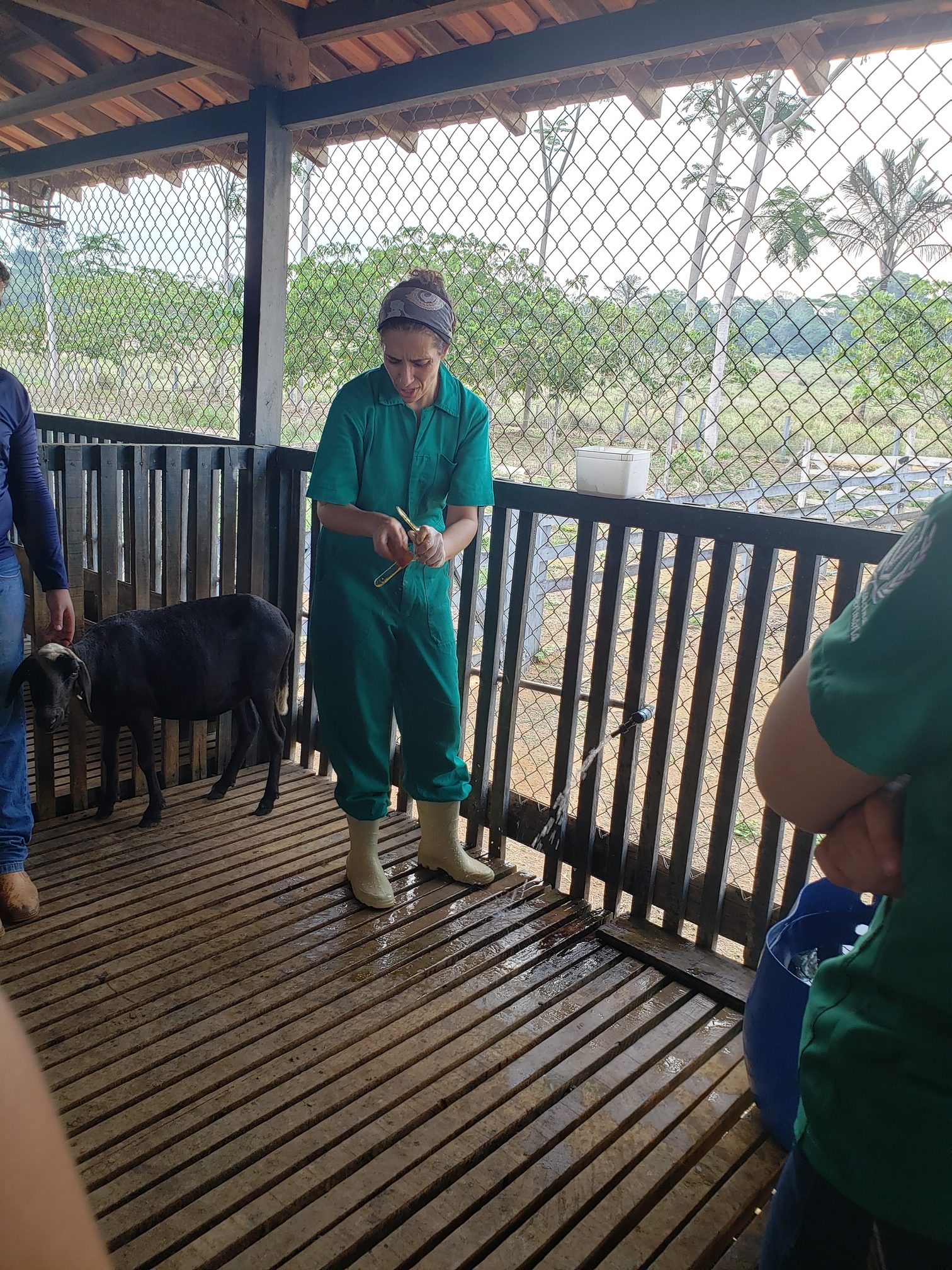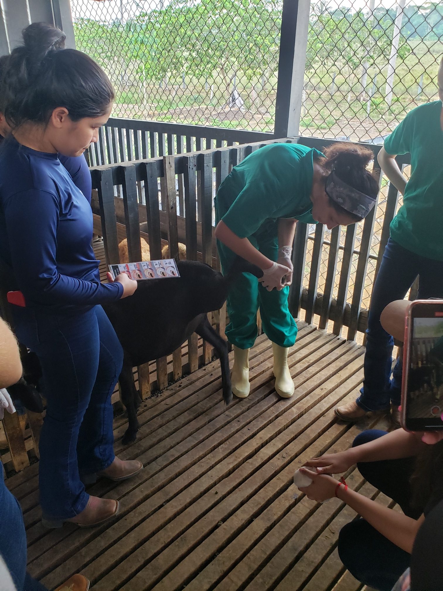 A aluna Renata Evelyn, do 4º período, descreveu o que foi feito na aula: “hoje foi uma aula de manejo sanitário. Fizemos os seguintes procedimentos: teste de famacha, colheita de exame de fezes, parte da avaliação do exame ginecológico e a avaliação do casco, pra saber se o animal tem pododermatite”.