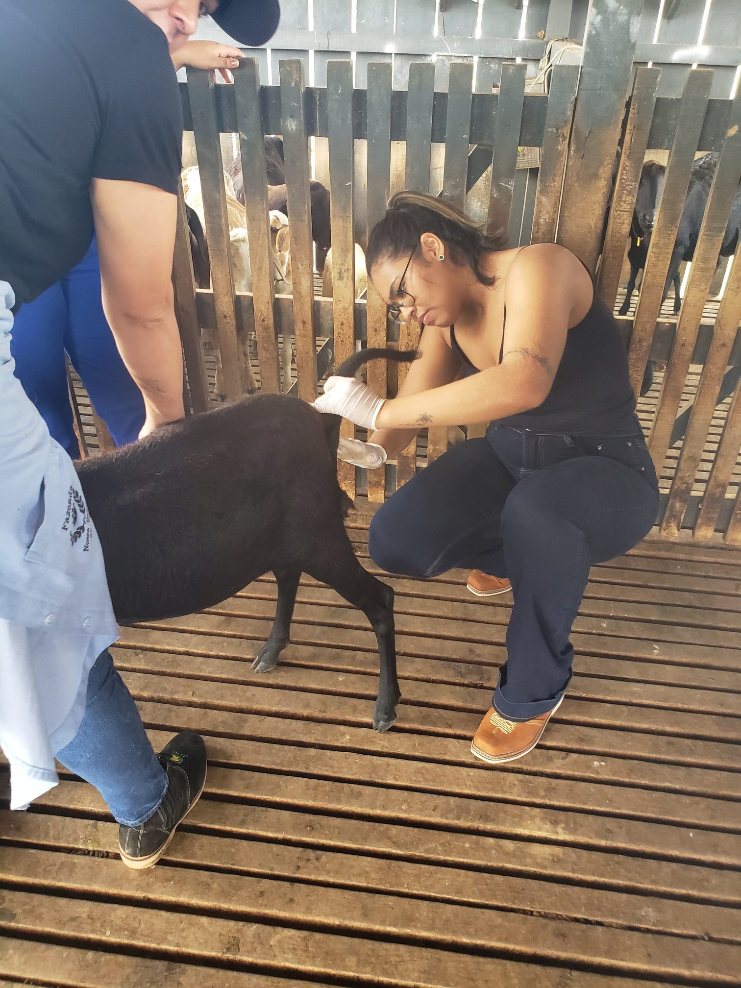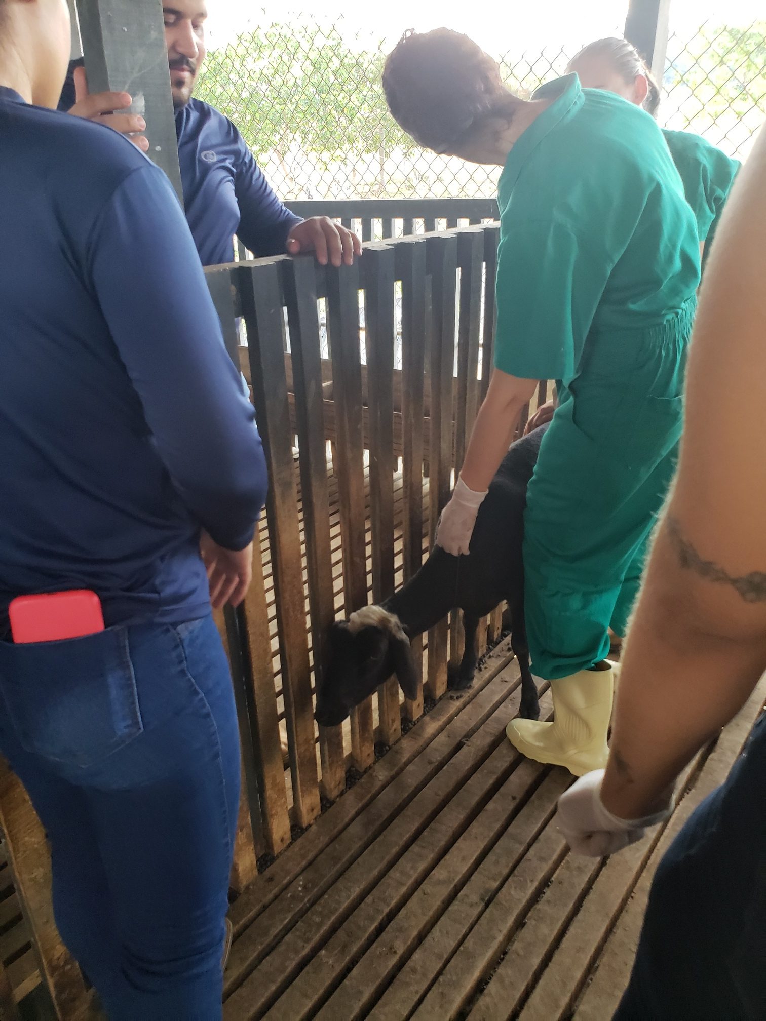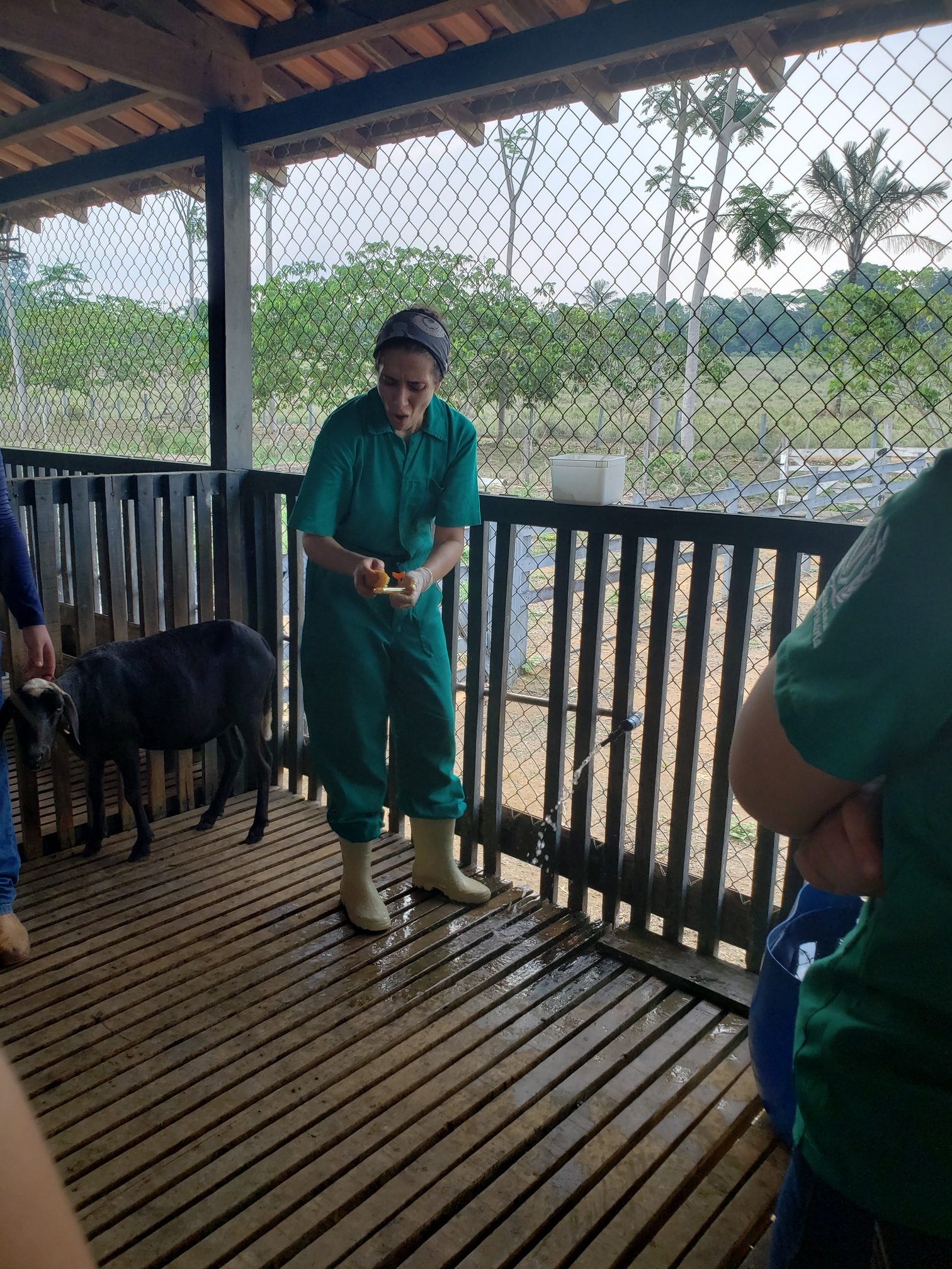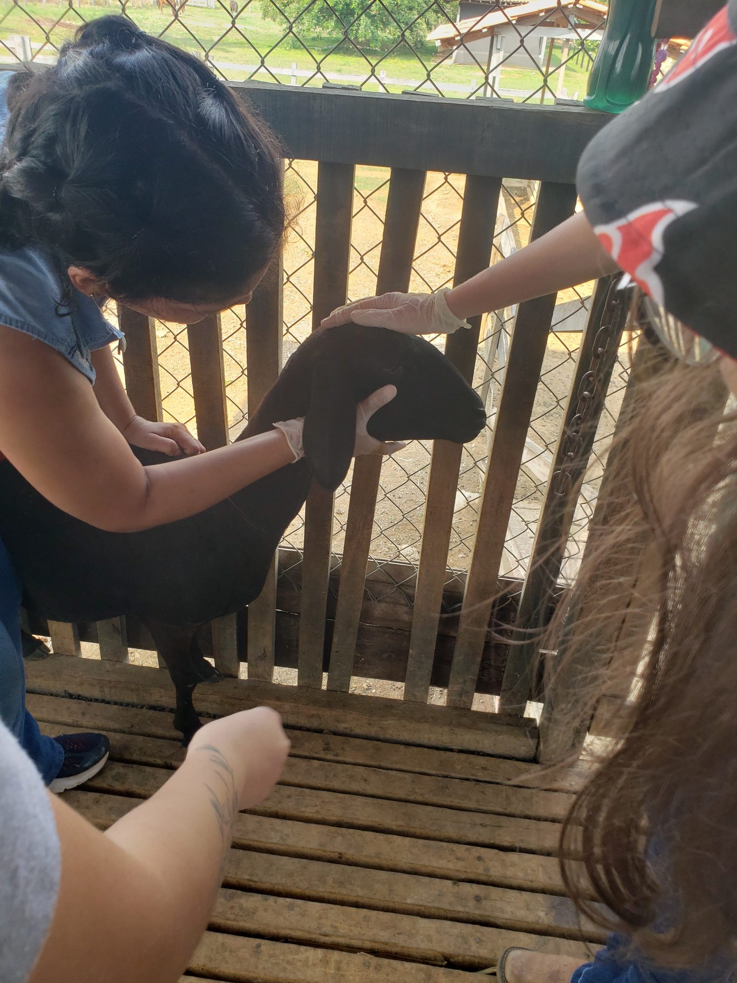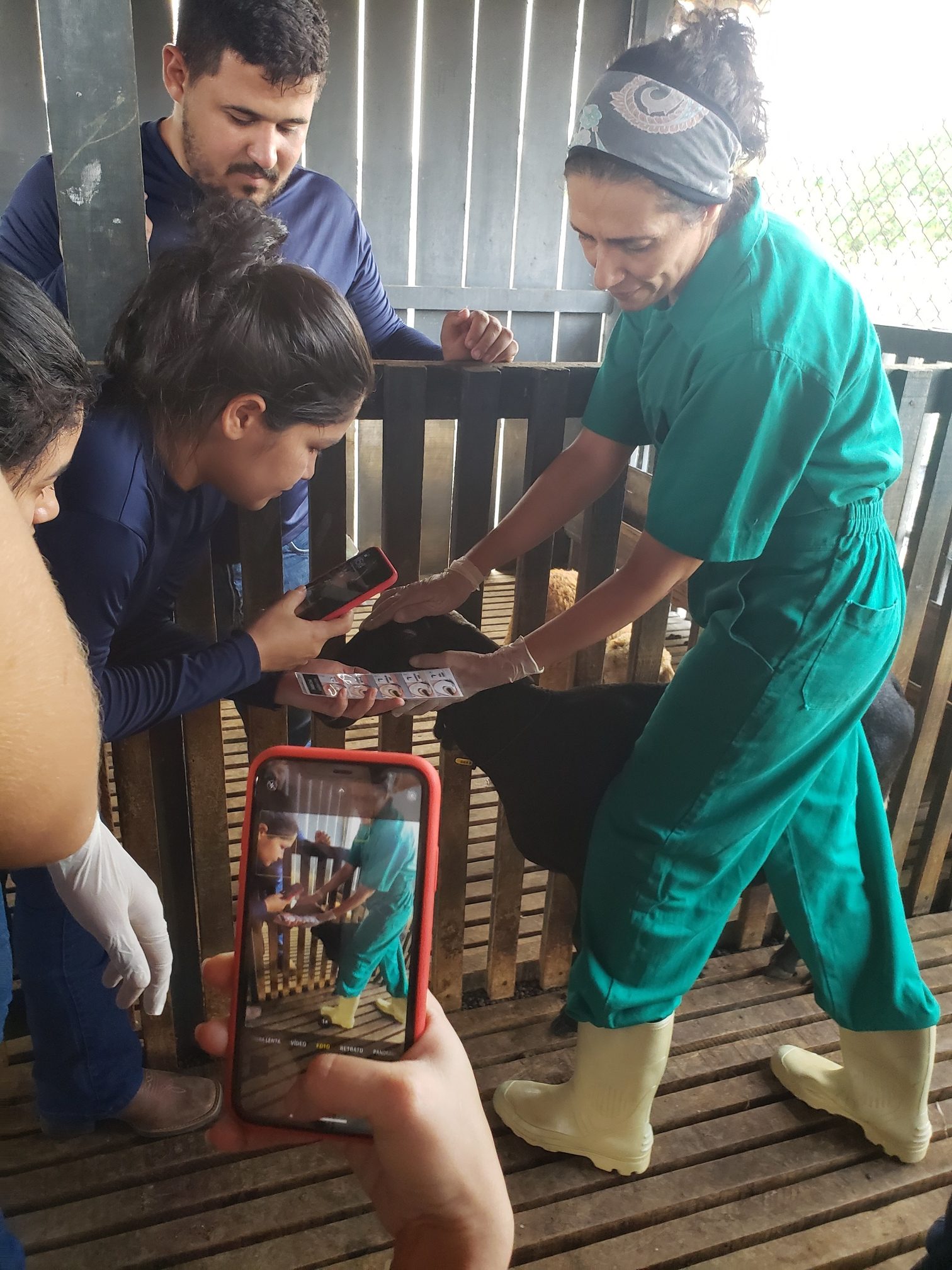 A aluna Renata Evelyn, do 4º período, descreveu o que foi feito na aula: “hoje foi uma aula de manejo sanitário. Fizemos os seguintes procedimentos: teste de famacha, colheita de exame de fezes, parte da avaliação do exame ginecológico e a avaliação do casco, pra saber se o animal tem pododermatite”.