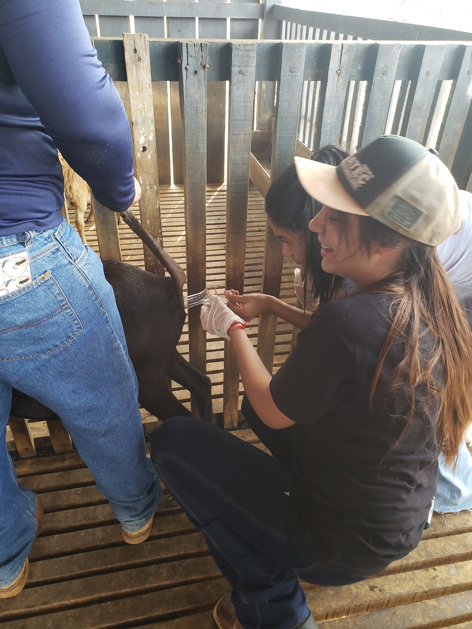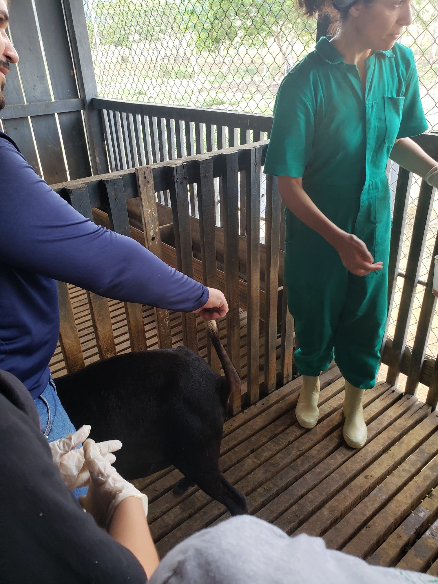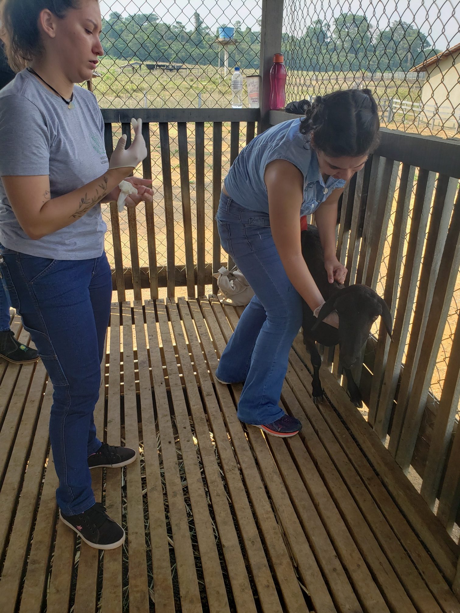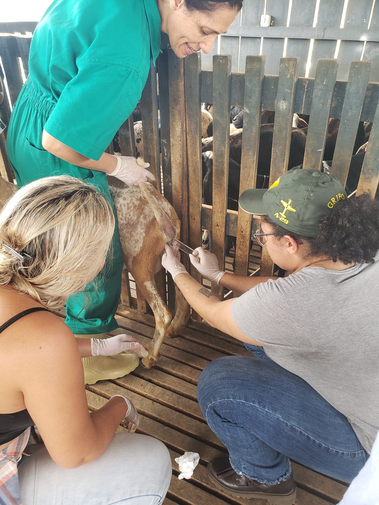 A aluna Renata Evelyn, do 4º período, descreveu o que foi feito na aula: “hoje foi uma aula de manejo sanitário. Fizemos os seguintes procedimentos: teste de famacha, colheita de exame de fezes, parte da avaliação do exame ginecológico e a avaliação do casco, pra saber se o animal tem pododermatite”.