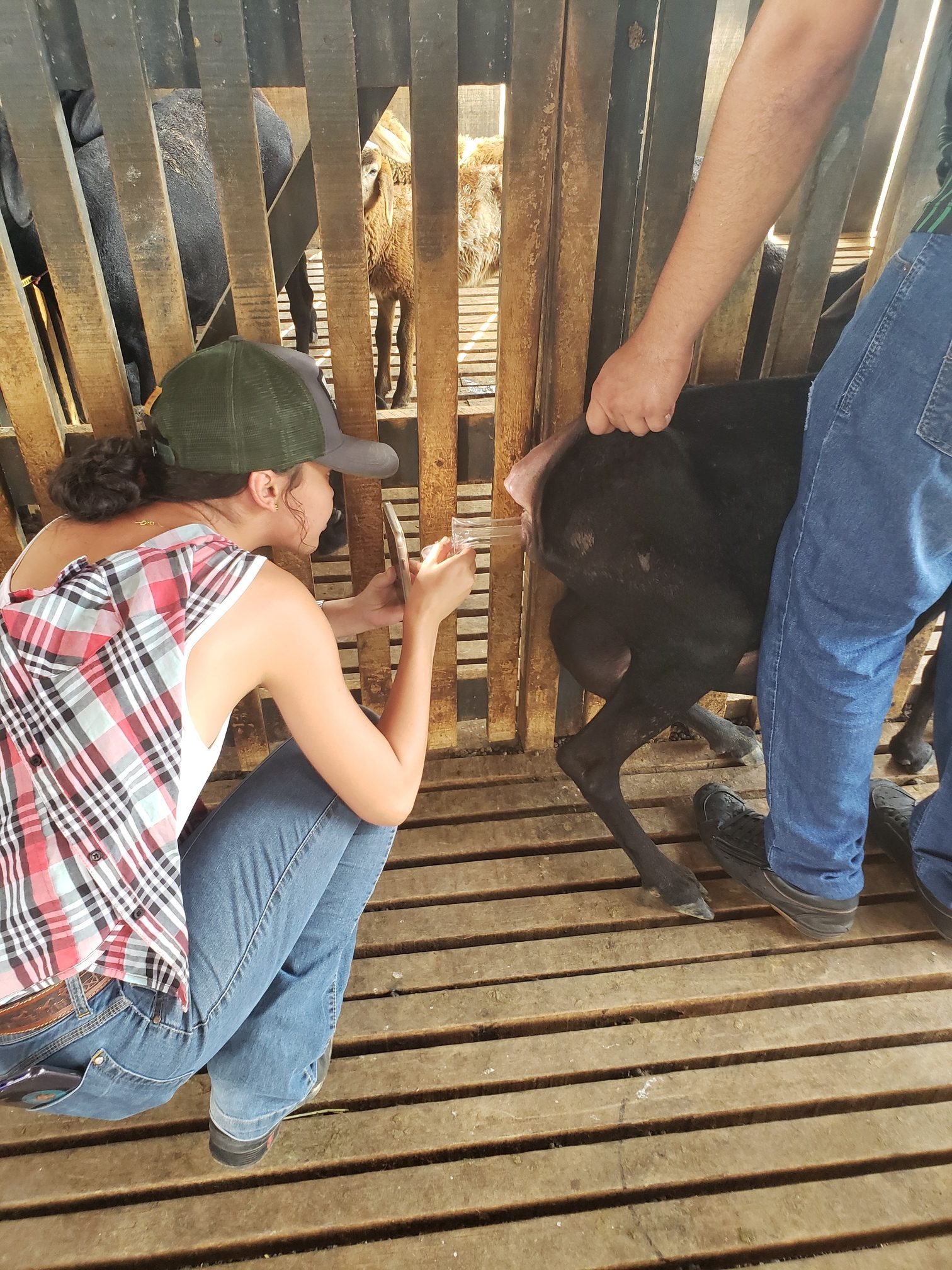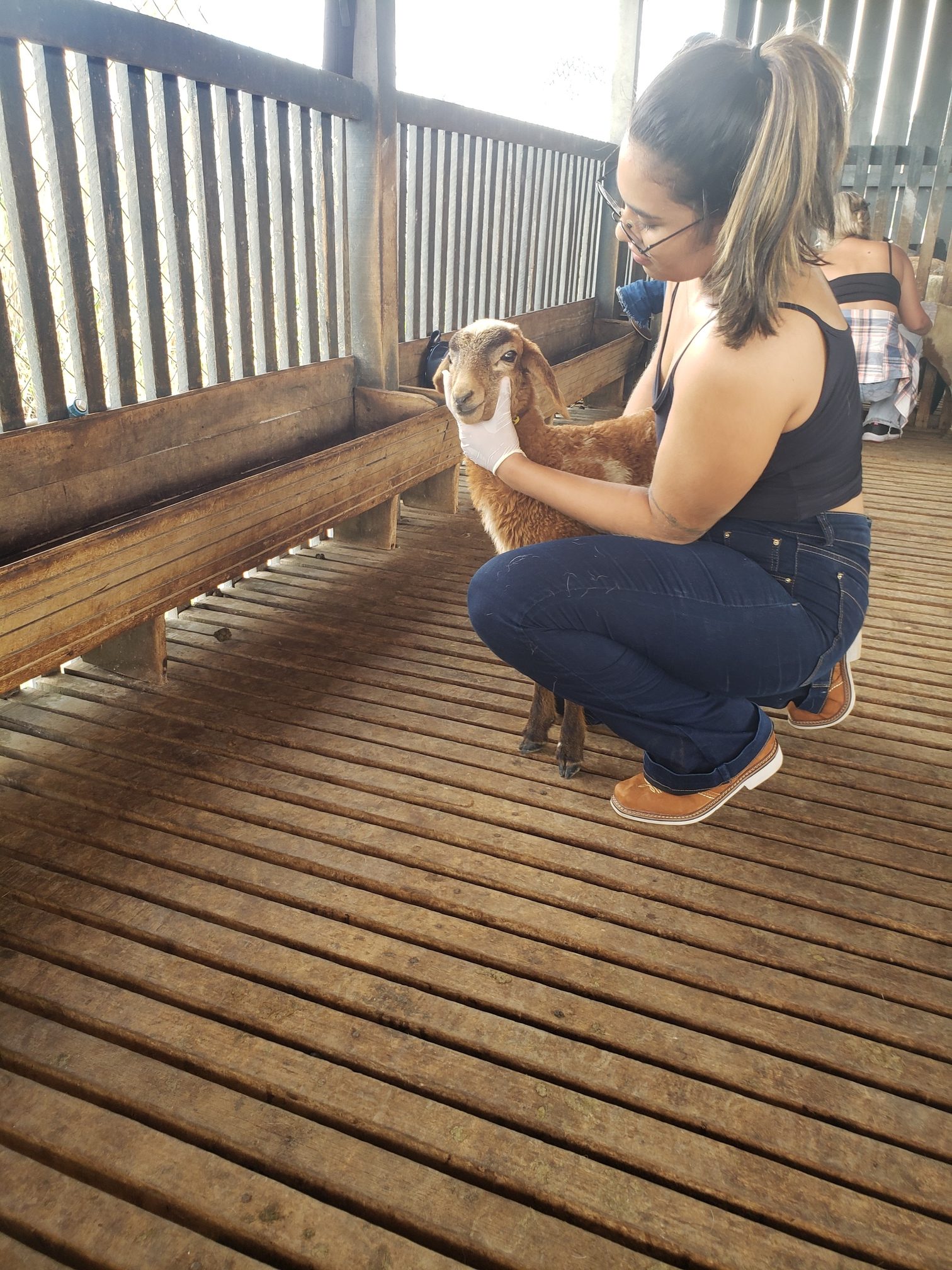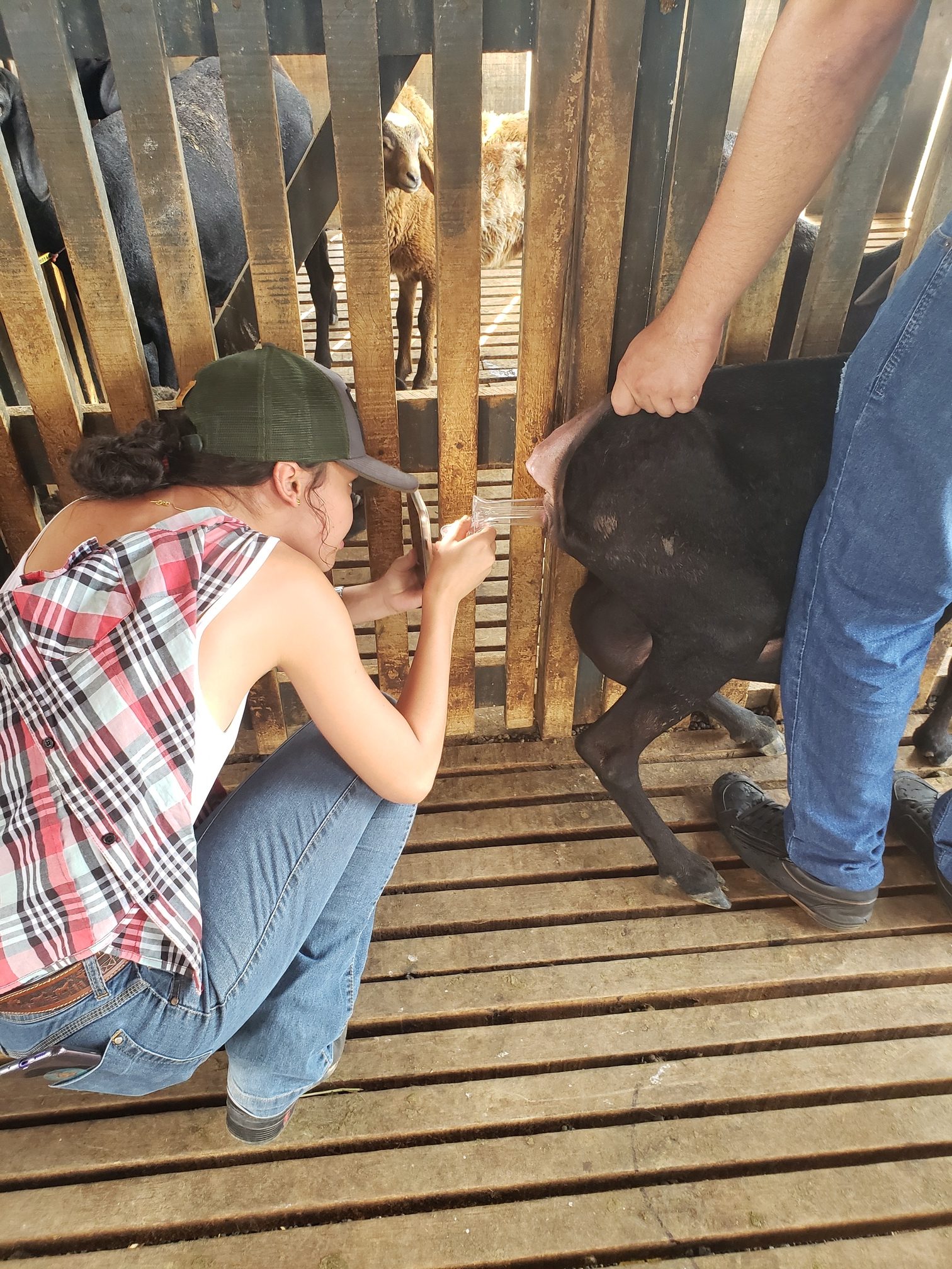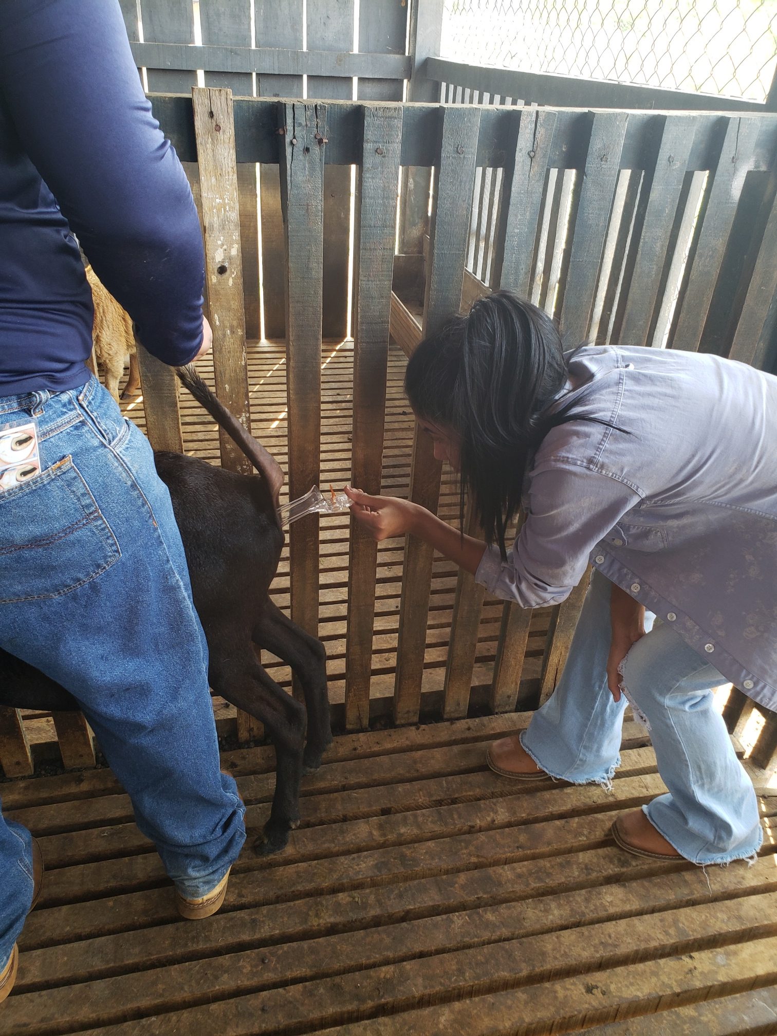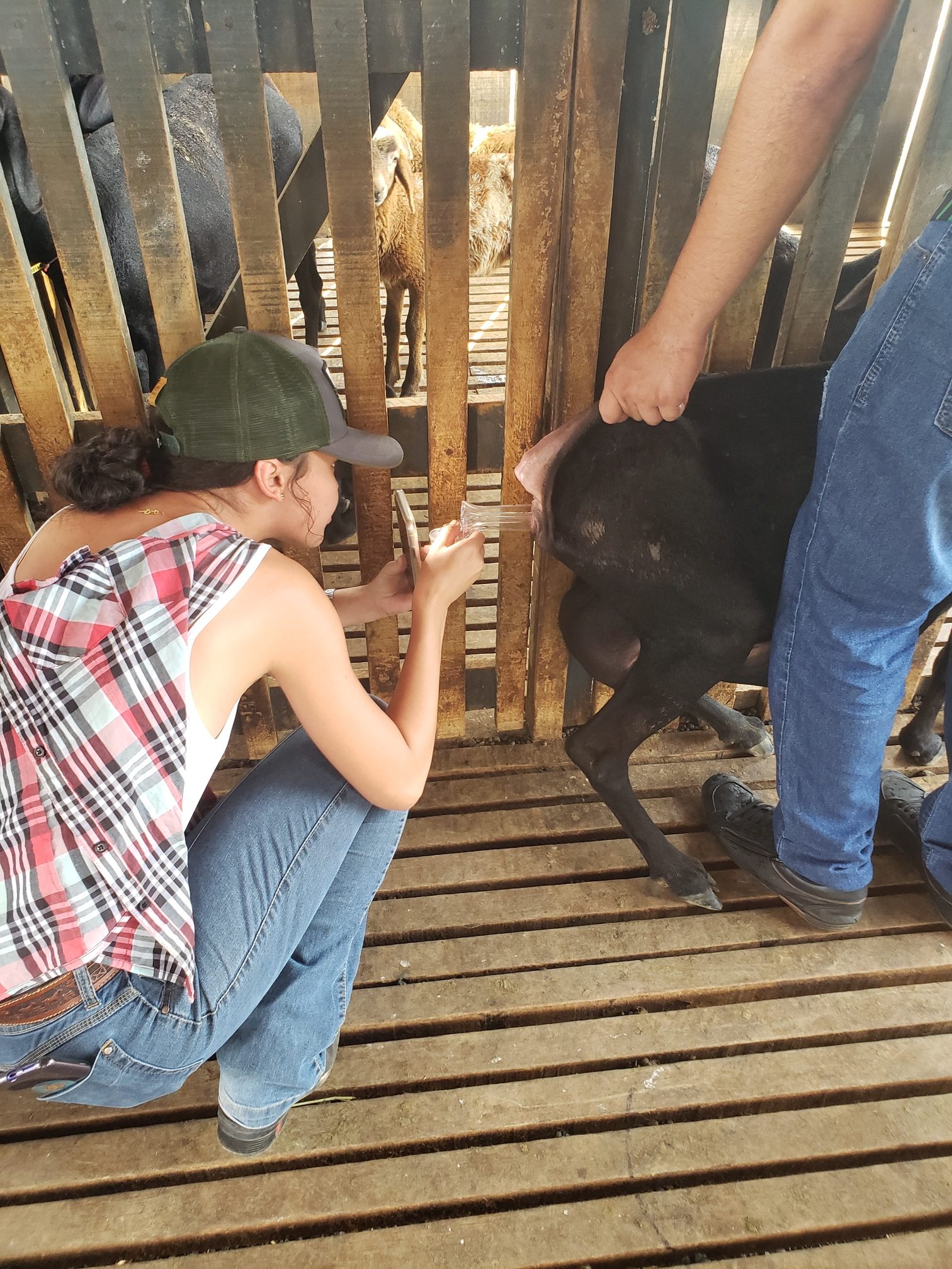 A aluna Renata Evelyn, do 4º período, descreveu o que foi feito na aula: “hoje foi uma aula de manejo sanitário. Fizemos os seguintes procedimentos: teste de famacha, colheita de exame de fezes, parte da avaliação do exame ginecológico e a avaliação do casco, pra saber se o animal tem pododermatite”.