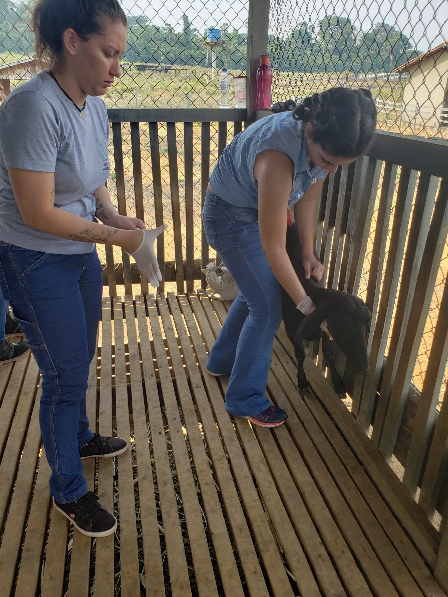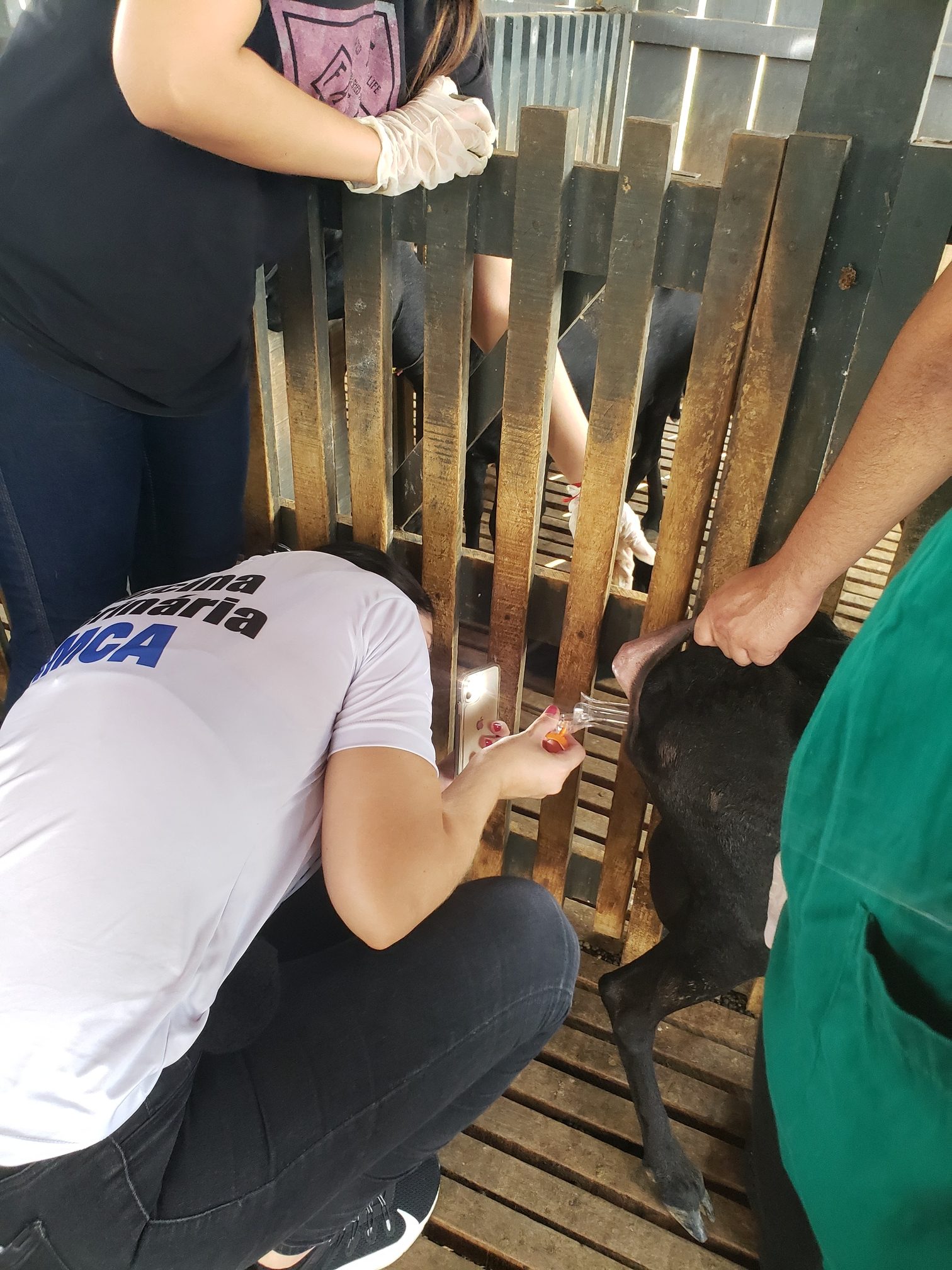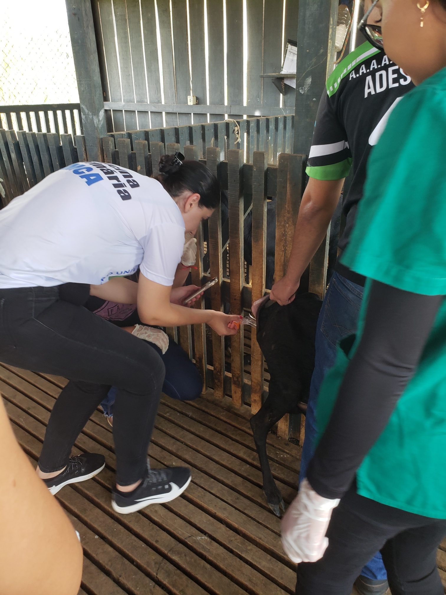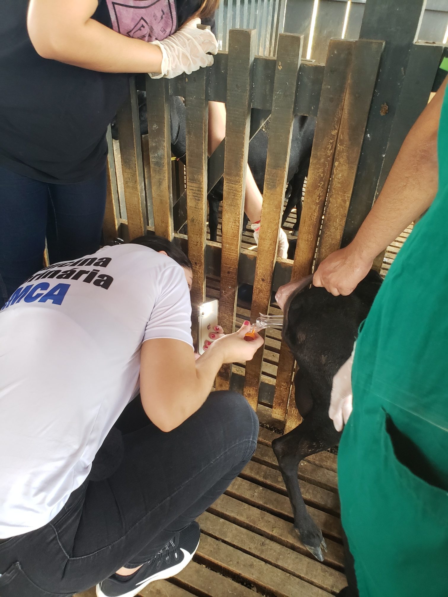 Nesta segunda (10), alunas do curso de Medicina Veterinária do Centro Universitário Aparício Carvalho participaram de uma aula prática na Fazenda Escola da instituição. A prática foi referente às disciplinas de Parasito e Parasitoses de importância em Medicina Veterinária 2 e bactérias e bacterioses de importância em Medicina Veterinária. O tema abordado foi o manejo sanitário em bovinos.