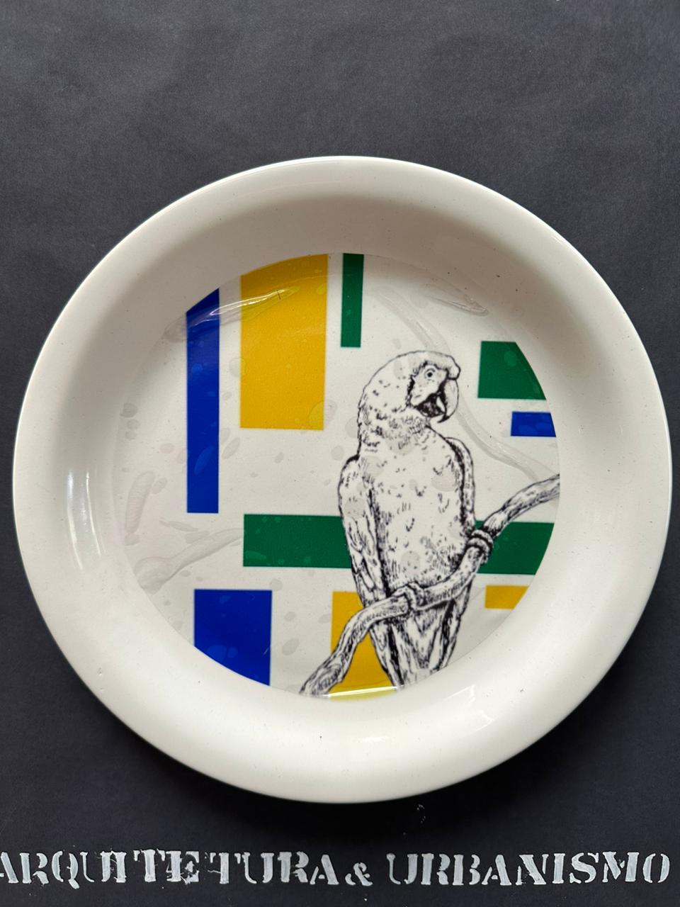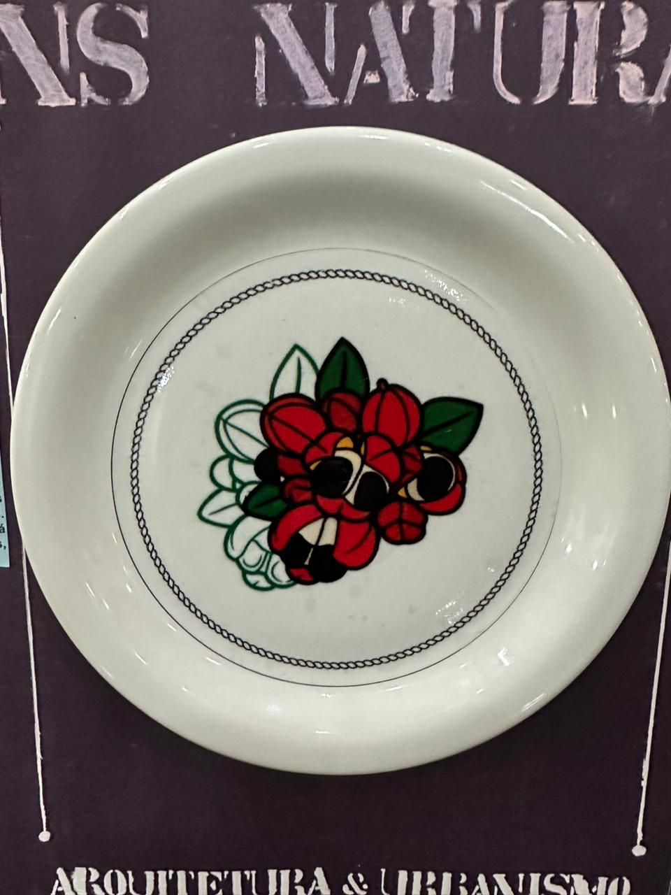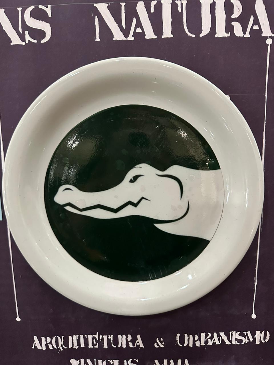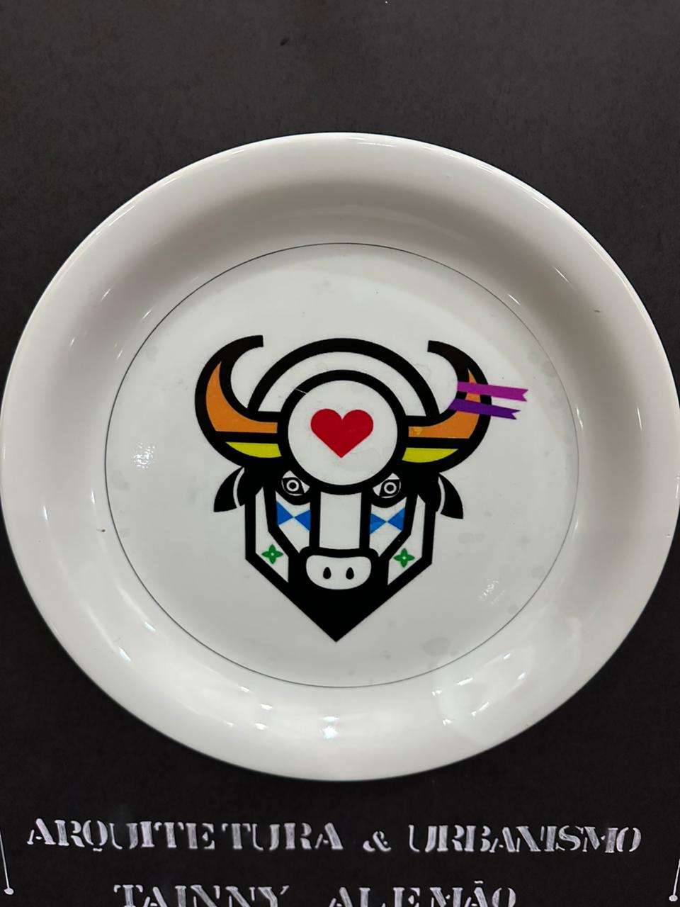 As figuras nos pratos de cerâmica foram pensadas com base nos estudos das cores positivas e negativas, bens naturais, materiais e imateriais do estado, como a fauna e a flora, representados por botos, araras, castanheiras, por exemplo.