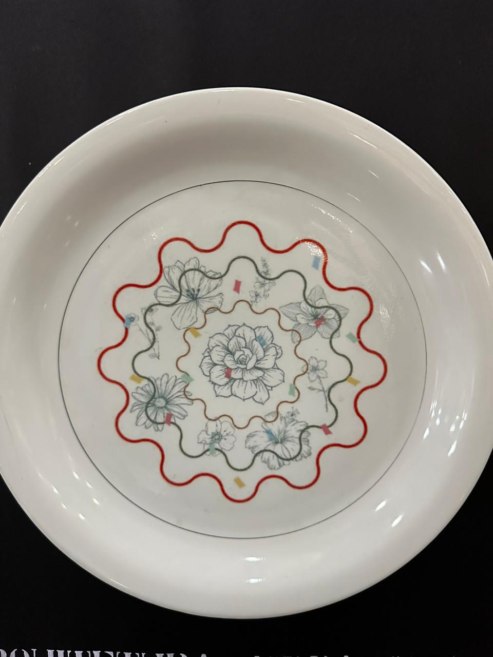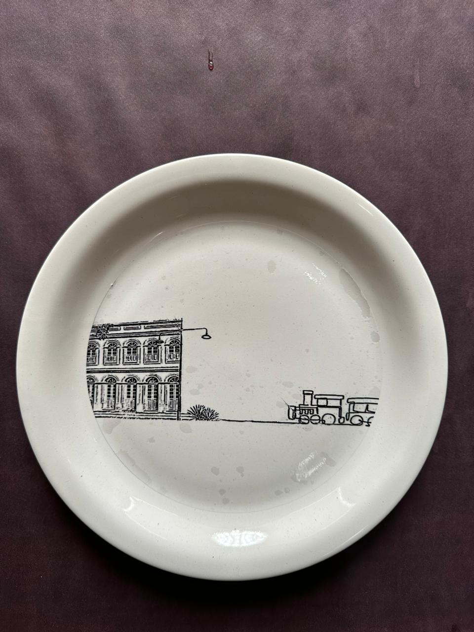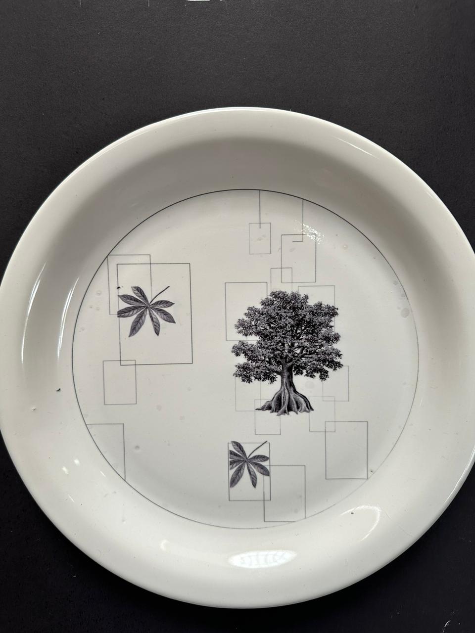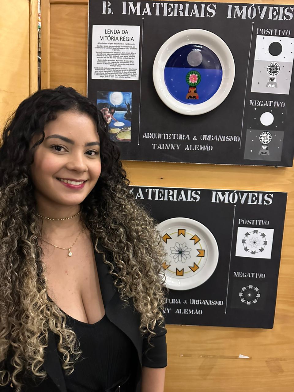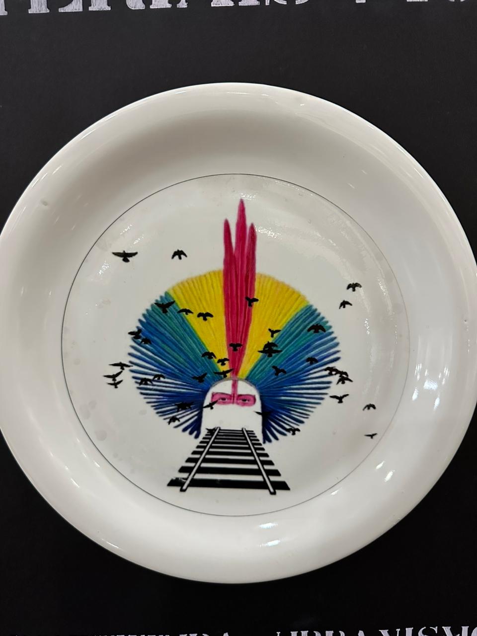 As figuras nos pratos de cerâmica foram pensadas com base nos estudos das cores positivas e negativas, bens naturais, materiais e imateriais do estado, como a fauna e a flora, representados por botos, araras, castanheiras, por exemplo.