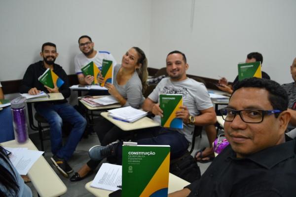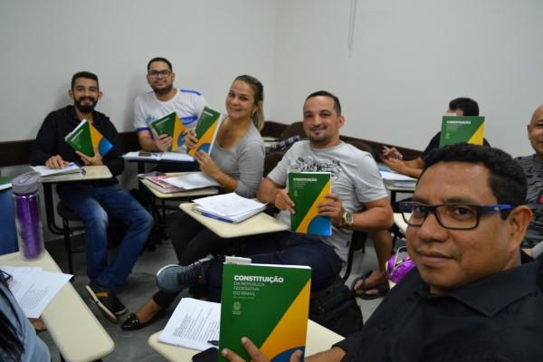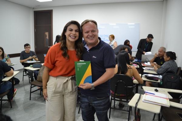 Foram entregues 170 exemplares, ou seja, todos os alunos do curso foram contemplados com uma constituição. Também participaram da entrega o Diretor de Expansão do Centro Universitário Maurício Carvalho, e o Reitor do Centro Universitário Aparício Carvalho (FIMCA), DR. Aparício Carvalho. Veja como foi a entrega dos exemplares em nossa galeria.