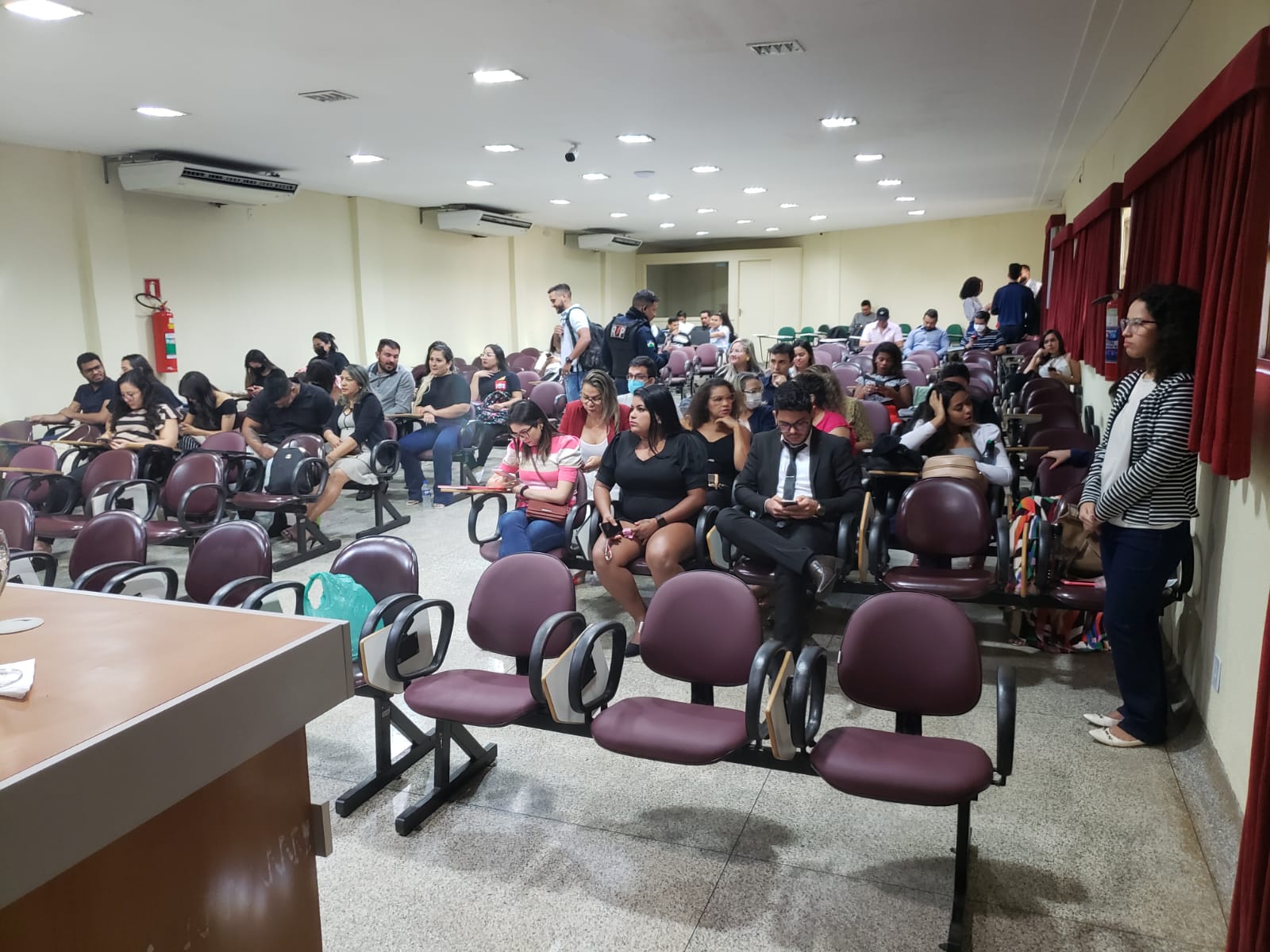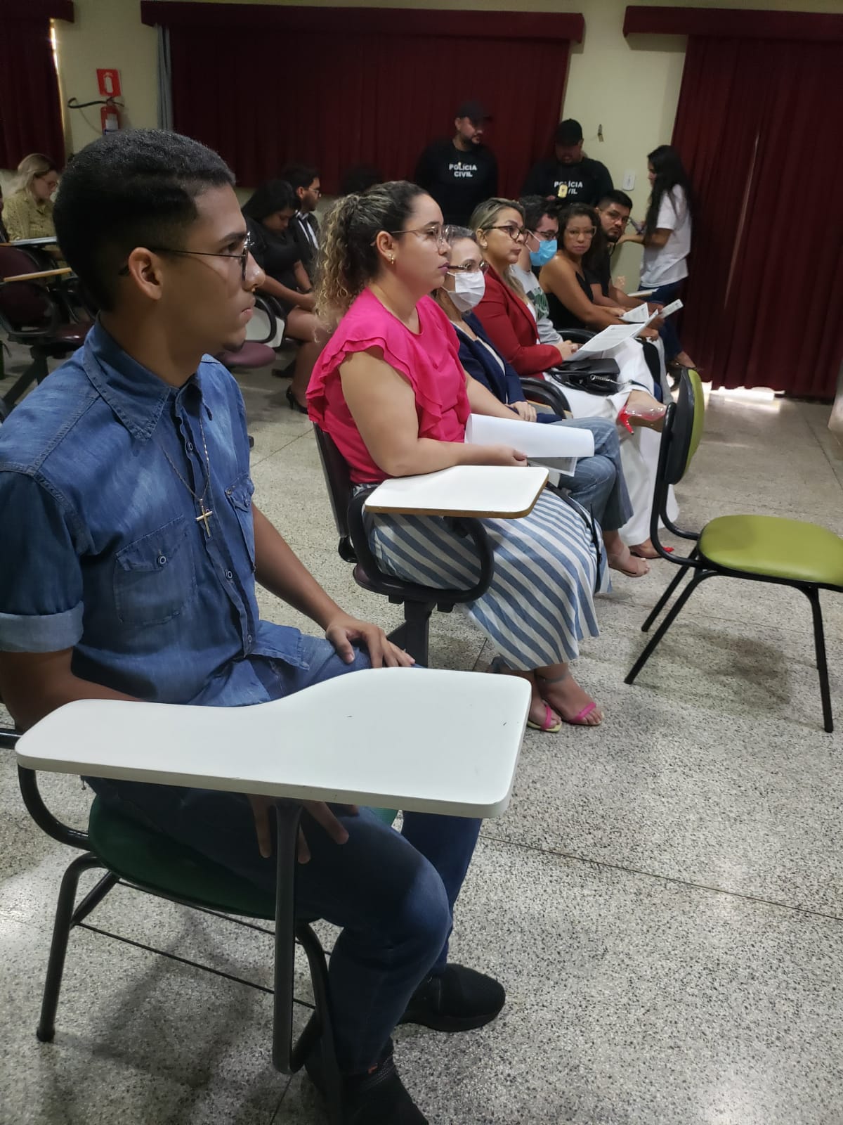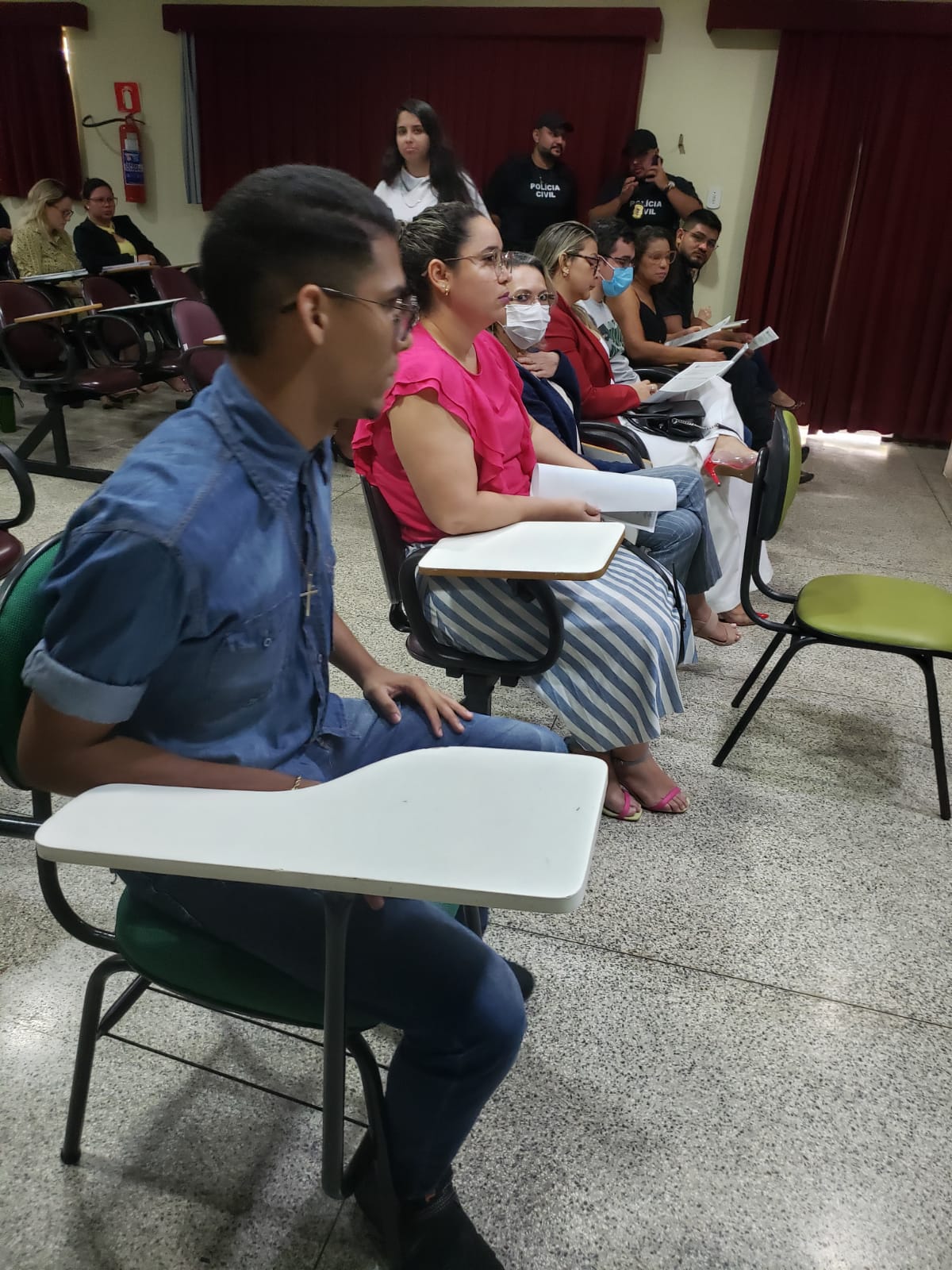 O professor Flávio Melo, coordenador da atividade, falou sobre como foi a organização: “distribuímos os grupos, as atividades, as funções. Fizemos reuniões, uma simulação para poder treinar os momentos solenes de cada evento do Júri, e cada um teve acesso aos autos: o Ministério Público, o Juiz e o Defensor, que prepararam suas falas, suas teses”.