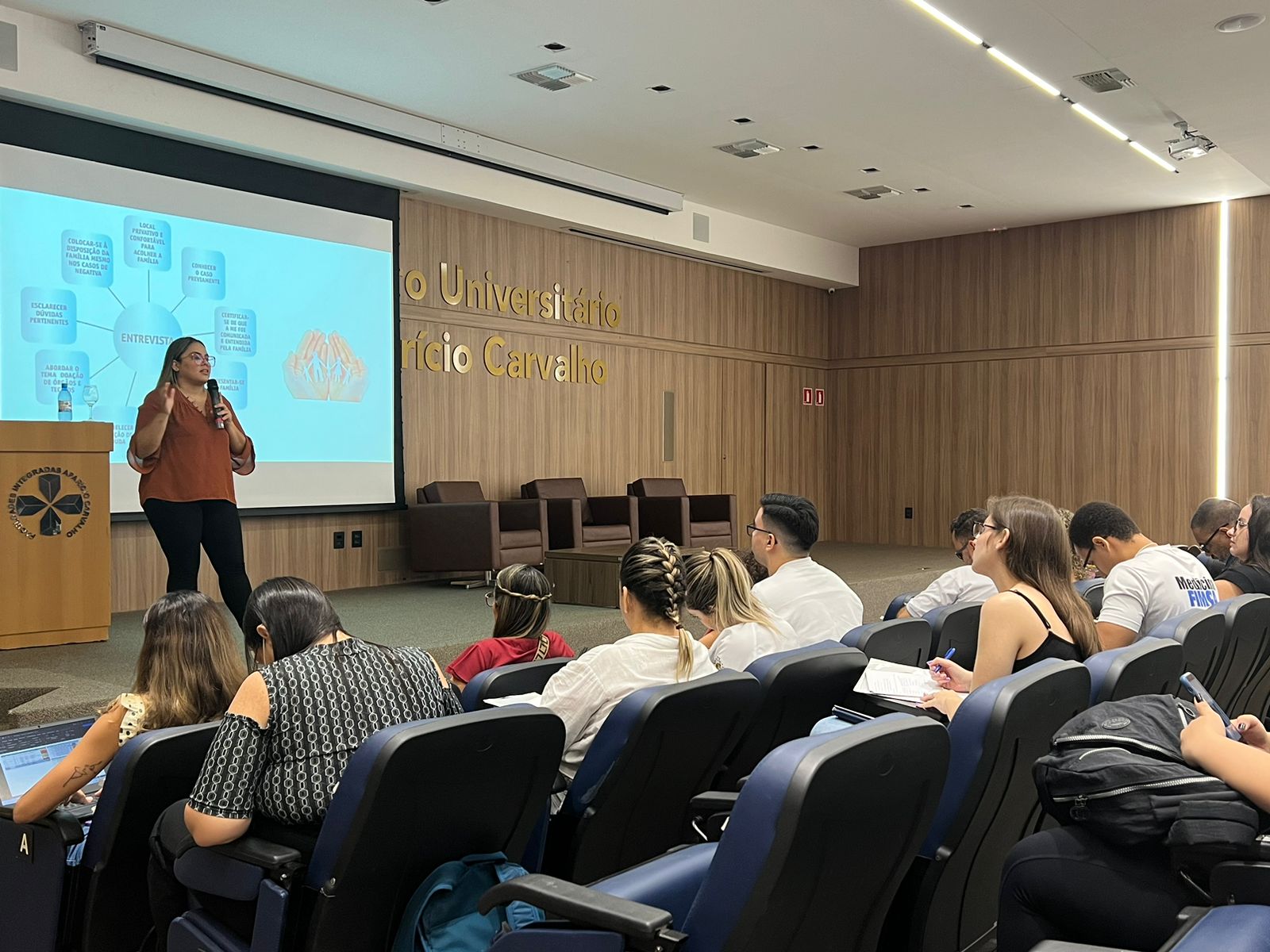 A palestra foi ministrada pela Enfermeira Erika Fernanda Fernandes, coordenadora da equipe da Central Estadual de Transplantes (CET) e da Organização de Procura de Órgãos (OPO). Com sua experiência e conhecimento na área, a palestrante compartilhou informações valiosas sobre o processo de doação de órgãos, desde a identificação e a abordagem da família do potencial doador até a realização do transplante propriamente dito: ´´Essa temática tem que ser mais aprofundada dentro das academias de medicina. Daqui vão sair médicos formadores de opinião, que vão estar dentro de unidades que têm pacientes com critérios de morte encefálica, então tirar as dúvidas, desmistificar e conhecer o processo nesse inicio de graduação vai preparar ainda mais para a carreira profissional“, afirmou a palestrante.