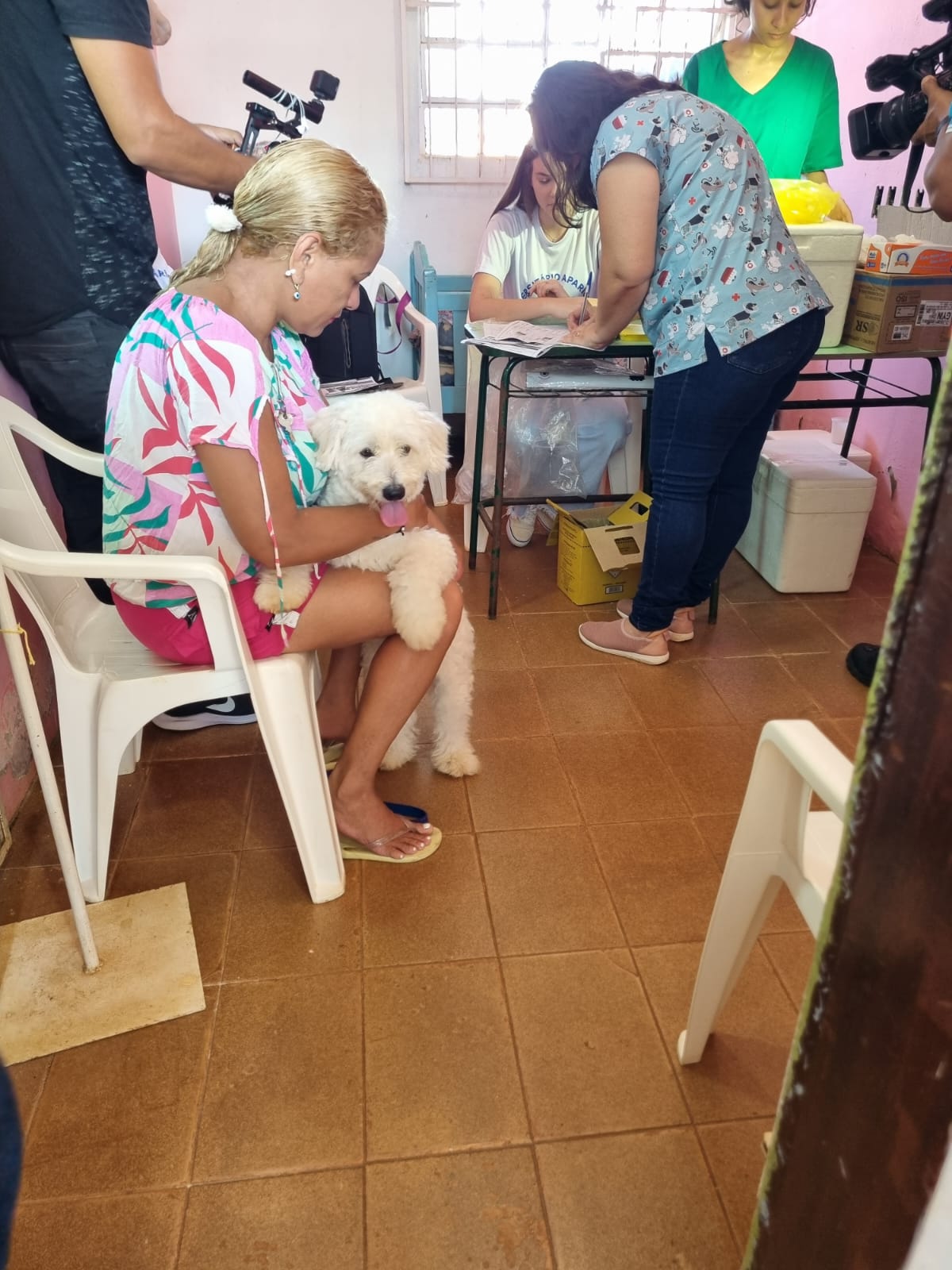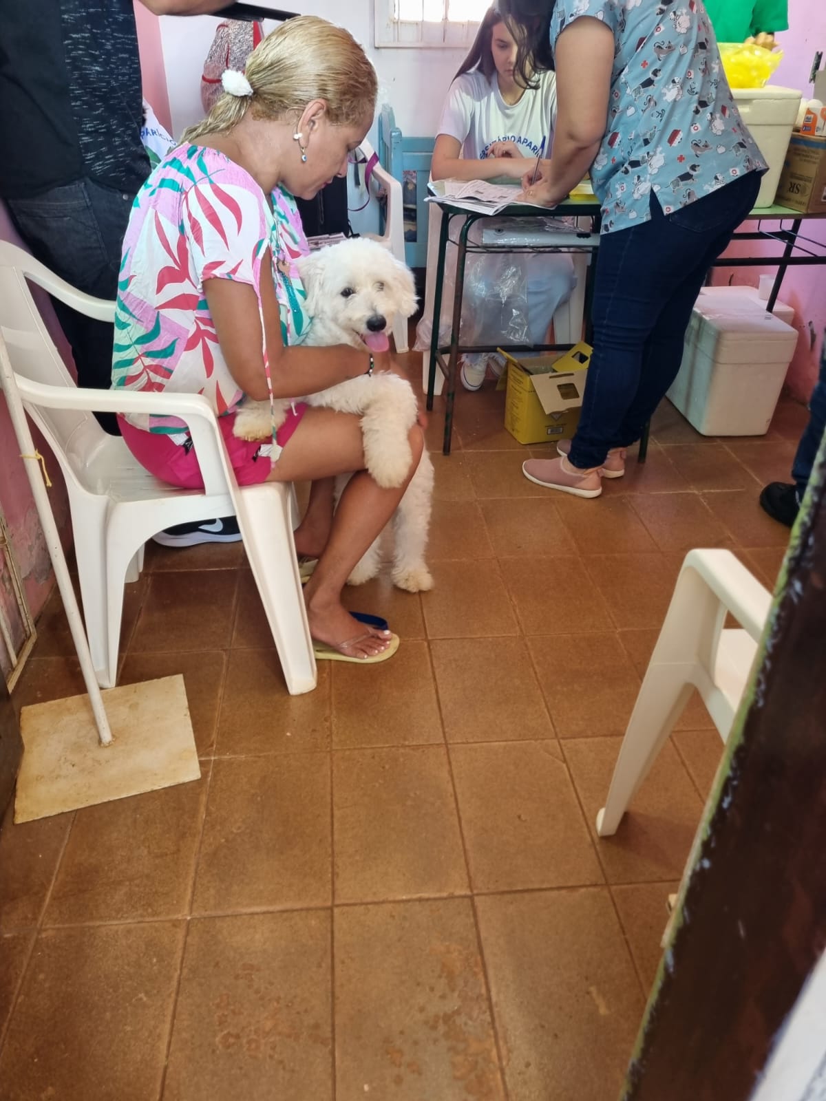O aluno Orenci Júnior também deu sua declaração: “Estamos fazendo a vacinação de cães e gatos, associando prática e teoria que aprendemos em sala de aula, e trazendo aqui pra ajudar a população, fazendo um trabalho de extensão para ajudar a comunidade”.