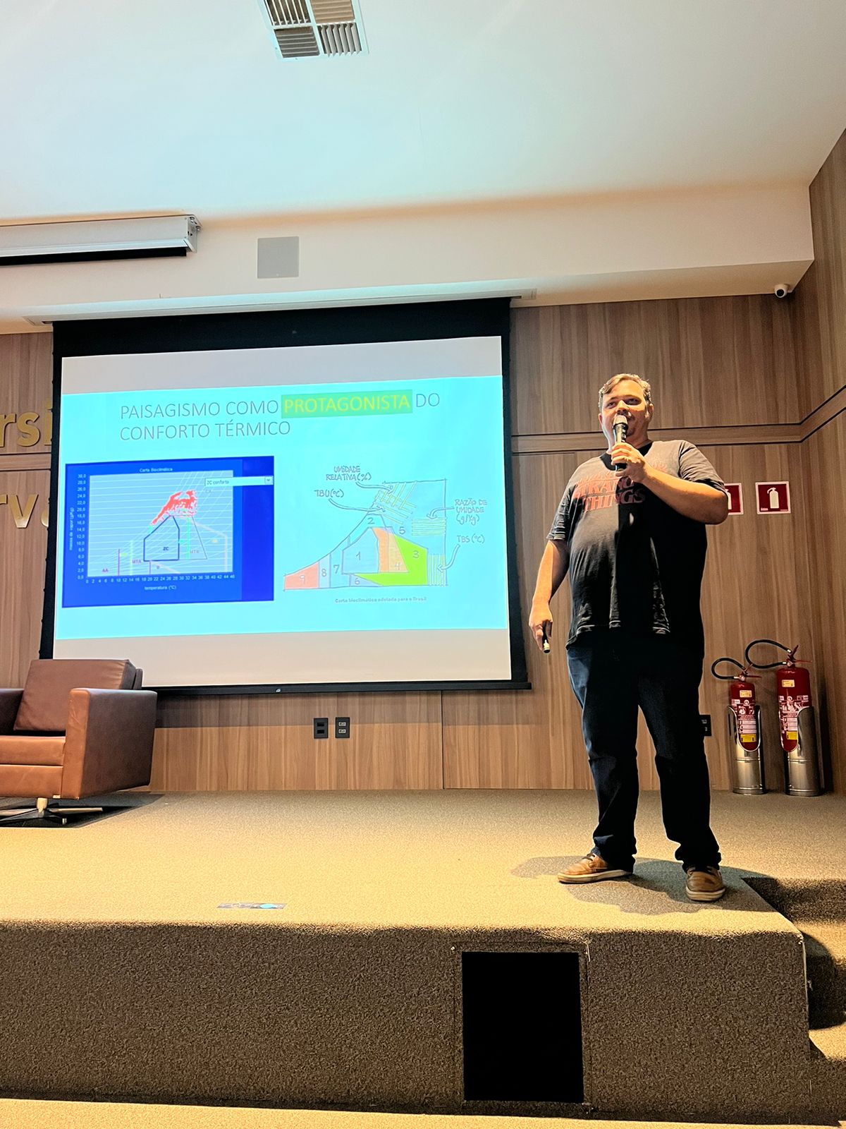 Na última segunda (17), aconteceu uma palestra para os alunos dos cursos de Arquitetura e Urbanismo e Agronomia, sobre Paisagismo. O evento aconteceu no anfiteatro Maria Silvia Carvalho e contou com grandes profissionais da área: