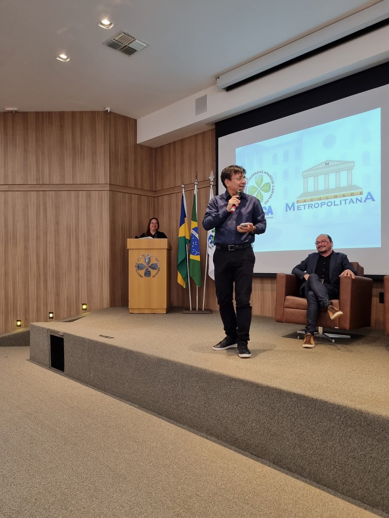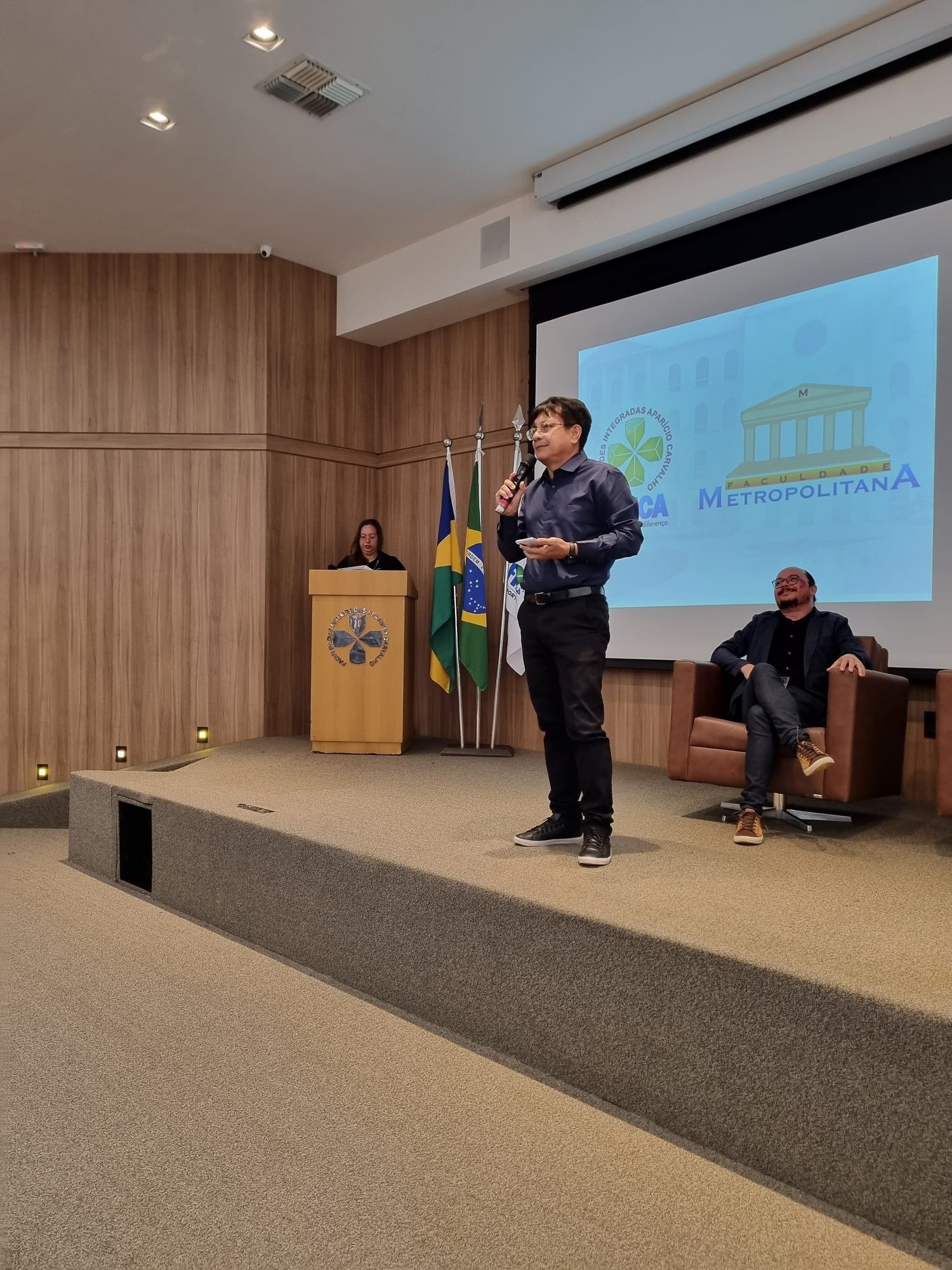 Nesta segunda (06), aconteceu a Aula Inaugural do curso de Medicina do Centro Universitário Aparício Carvalho – FIMCA. O evento ocorreu no anfiteatro Dra. Maria Silvia Carvalho e contou com a participação do magnífico Reitor Dr. Aparício Carvalho, da Diretora Acadêmica do Grupo Educacional Aparício Carvalho, Dra. Nelice Batistelli; do Vice Diretor da Faculdade Metropolitana, Luiz Ibanor; do Coordenador Pedagógico, Edimar Sartoro; e do coordenador do curso de Medicina, Dr. Luis Maiorquim.