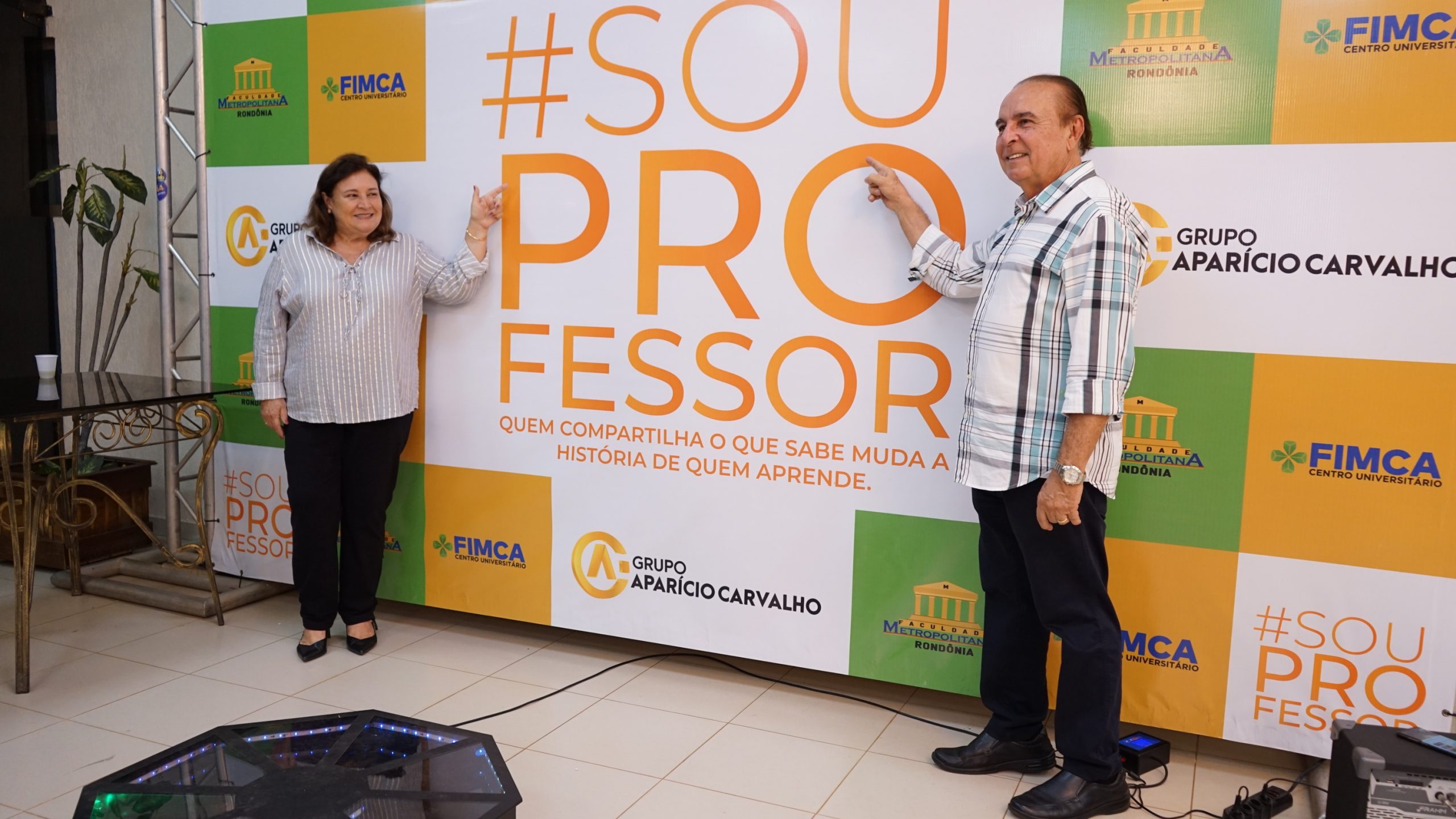 Nesta sexta (14), o Centro Universitário Aparício Carvalho realizou um evento para comemorar o Dia dos Professores. A celebração aconteceu no Hall do Auditório da Faculdade Metropolitana e aconteceu em dois momentos: às 11h e às 17:30h.