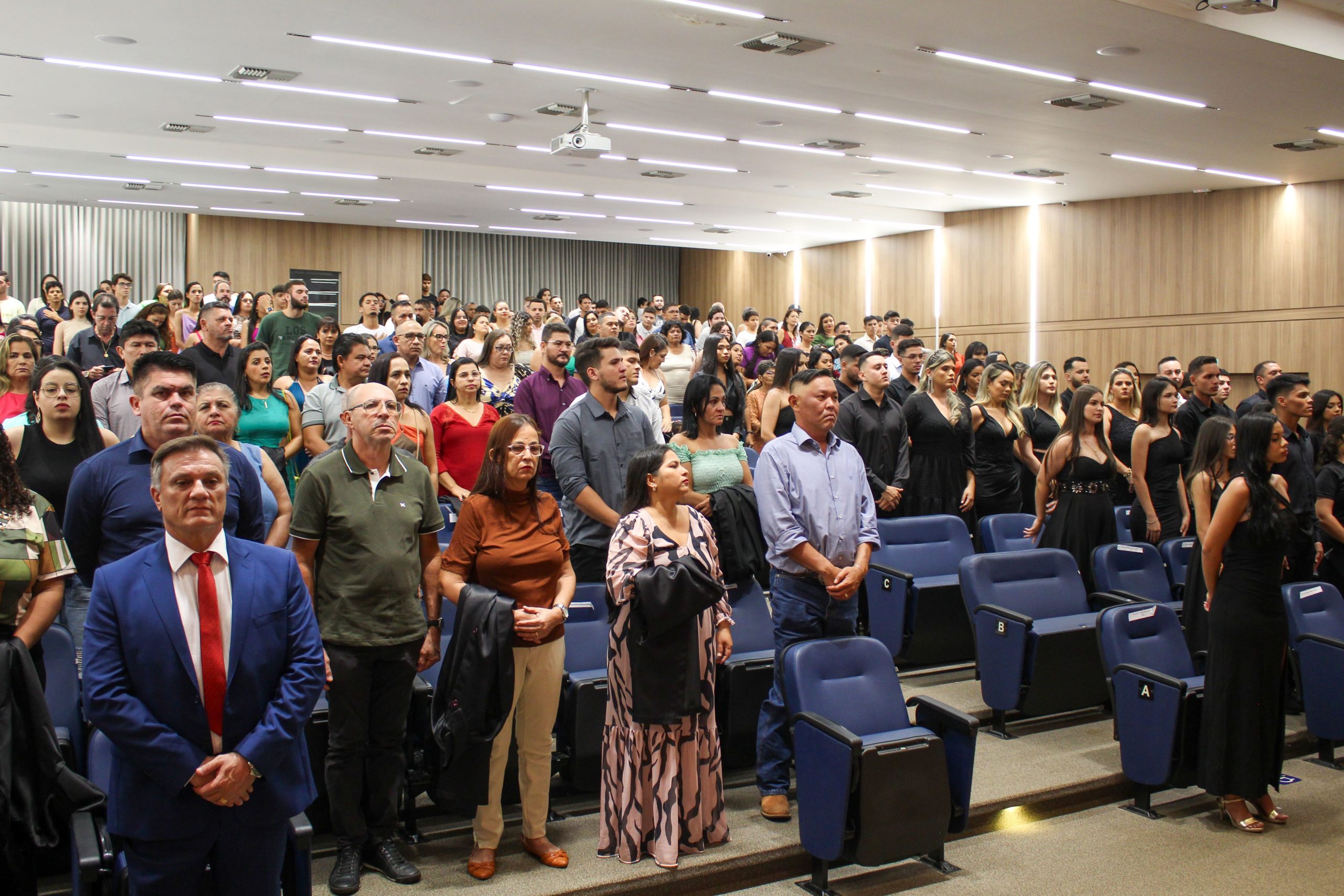 A diretora acadêmica, Nelice Milena Batistelli, e o coordenador adjunto, Josué Passos, também estiveram presentes, enriquecendo a cerimônia com sua participação.
