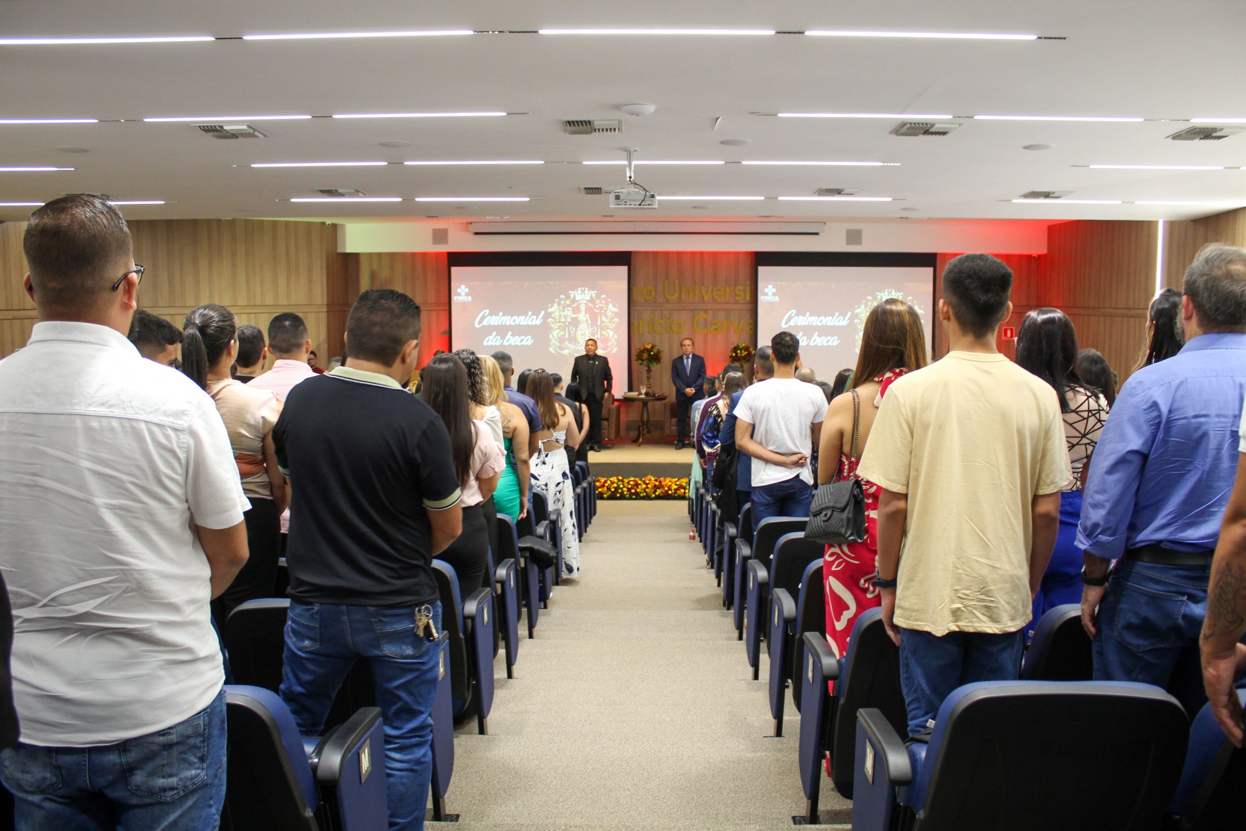 Na noite da última terça-feira (12), o anfiteatro Maria Silvia do Centro Universitário Aparício Carvalho – Fimca foi palco de um momento histórico para a instituição. Pela primeira vez, a Fimca realizou a cerimônia da beca para os acadêmicos da oitava turma do curso de Direito.
