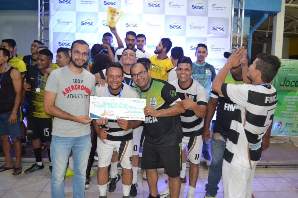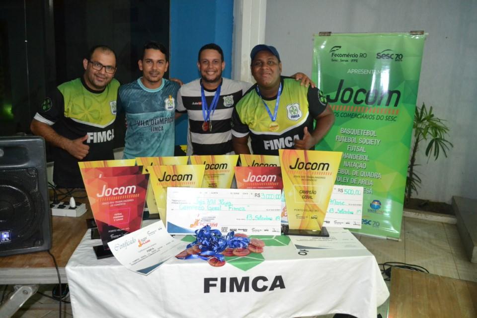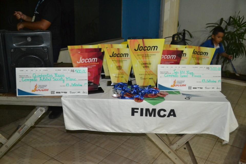 Durante a última sexta-feira (13), aconteceu no SESC Esplanada a final do futebol society da 37° edição dos Jogos dos trabalhadores do comércio, o JOCOM 2019. A final aconteceu entre os times do Centro Universitário Aparício Carvalho (FIMCA), e o time da Eletropar Autopeças. O Jogo terminou com a Vitoria da FIMCA pelo placar de 3 a 1. O Centro Universitário também foi a empresa que mais ganhou entre  todas as modalidades como Basquetebol, Vôlei, futsal, Handebol e outras. Ao todo foram 10 troféus conquistados além dos prêmios em dinheiro.  Veja como foi a premiação em nossa galeria de fotos.