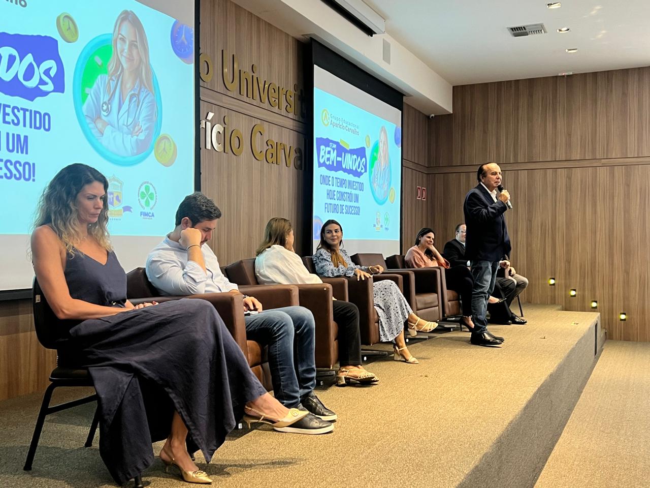 O Diretor Presidente do Grupo Aparício Carvalho e Reitor Emérito da FIMCA, Dr. Aparício Carvalho de Moraes, abriu o evento com uma mensagem inspiradora. “Hoje iniciamos o ano letivo que concretiza os sonhos de muitos jovens que escolheram a FIMCA e a Faculdade Metropolitana para realizar o desejo de se tornarem médicos. É uma grande satisfação recebê-los aqui, onde terão a oportunidade de não apenas realizar seus próprios sonhos, mas também os de suas famílias e daqueles que confiam em seu potencial para oferecer assistência médica de qualidade à população”, destacou Dr. Aparício. Ele ainda reforçou o compromisso da instituição em oferecer um ensino de excelência, formando profissionais competentes e éticos, preparados para os desafios da medicina.