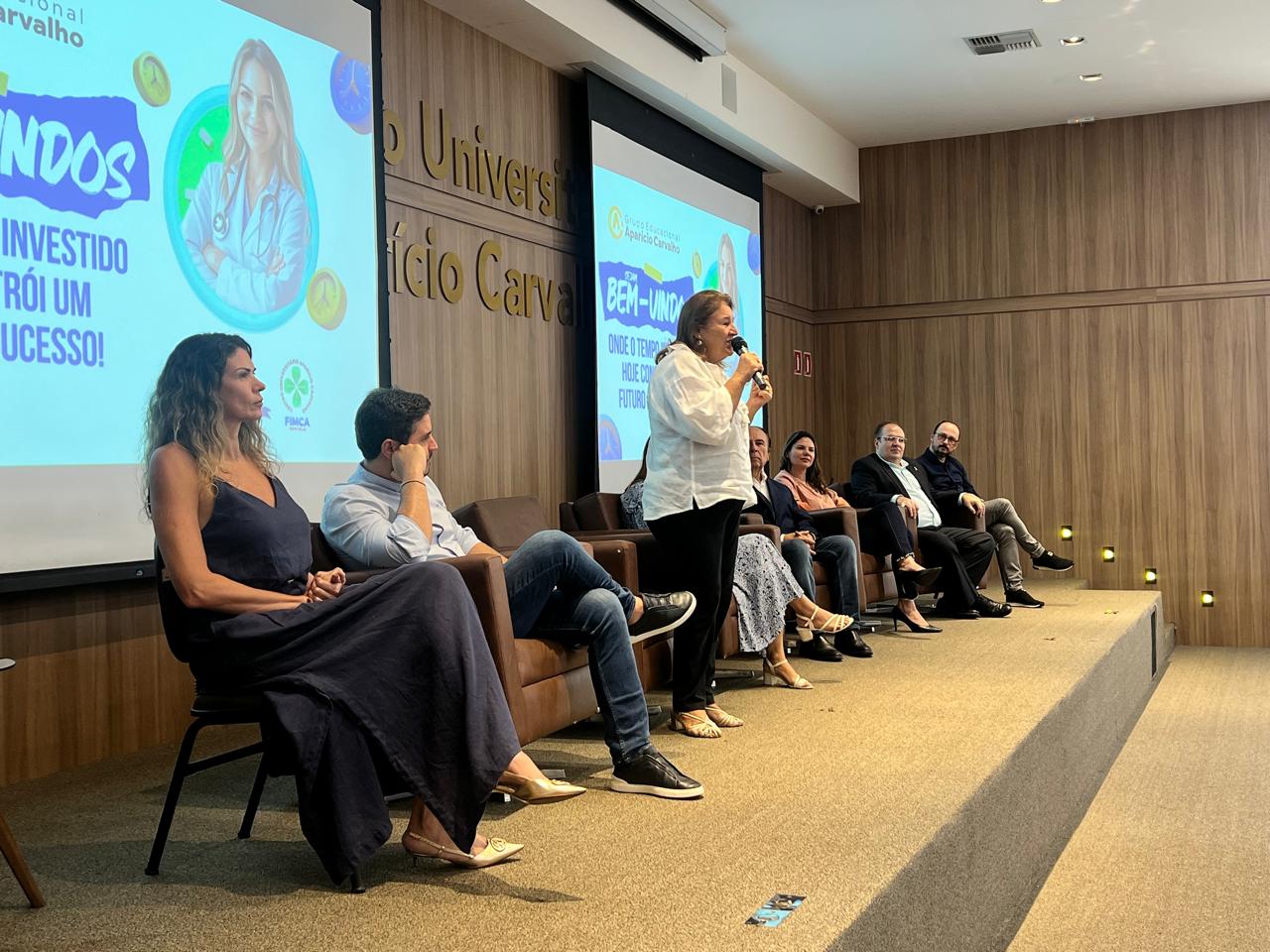 A Diretora Acadêmica do Grupo Aparício Carvalho, Dra. Nelice Batistelli, o Diretor do Núcleo EAD da FIMCA, Profº Edimar Sartoro e os professores Dr. Anderson Franklin e Dr. Eliu de Freitas Cabral também dirigiram palavras de boas-vindas aos calouros, enfatizando a importância da dedicação aos estudos e da busca constante pelo conhecimento.