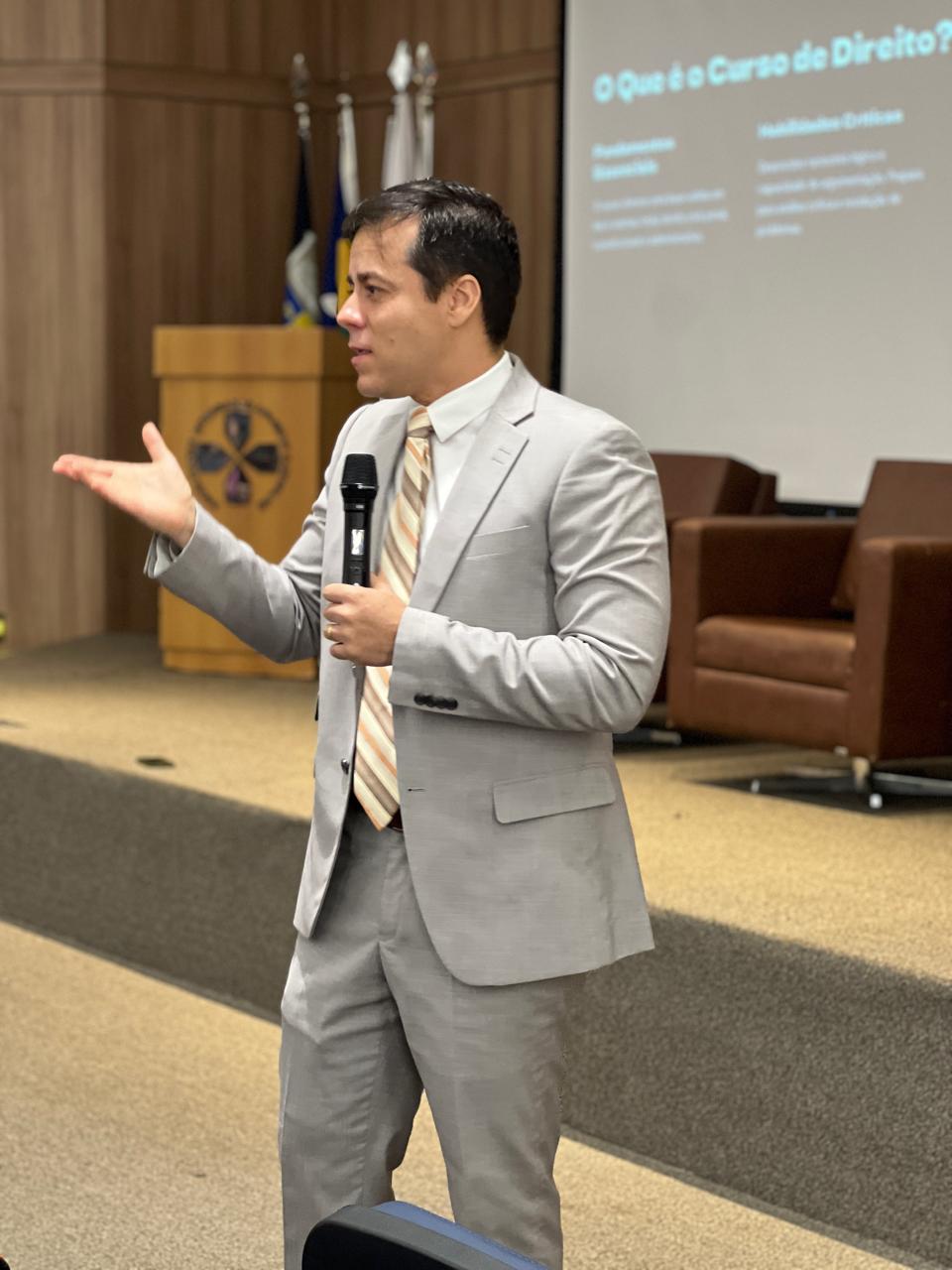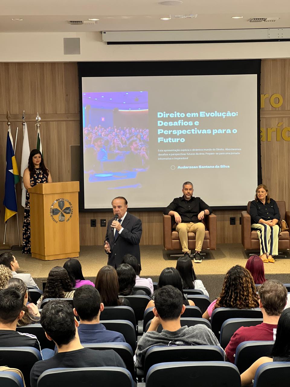 Além disso, Dr. Audarzean pontuou os desafios que os acadêmicos enfrentarão ao longo do curso e, posteriormente, no exercício da profissão. Segundo ele, o Direito é uma área de múltiplas vertentes e exige que os profissionais saibam lidar com adversidades de forma estratégica. Ele explicou que o primeiro grande desafio é justamente a escolha da carreira dentro do Direito, pois há diversas possibilidades de atuação, como advocacia, magistratura, Ministério Público, Defensoria Pública, delegacia, carreiras jurídicas empresariais e muitas outras.