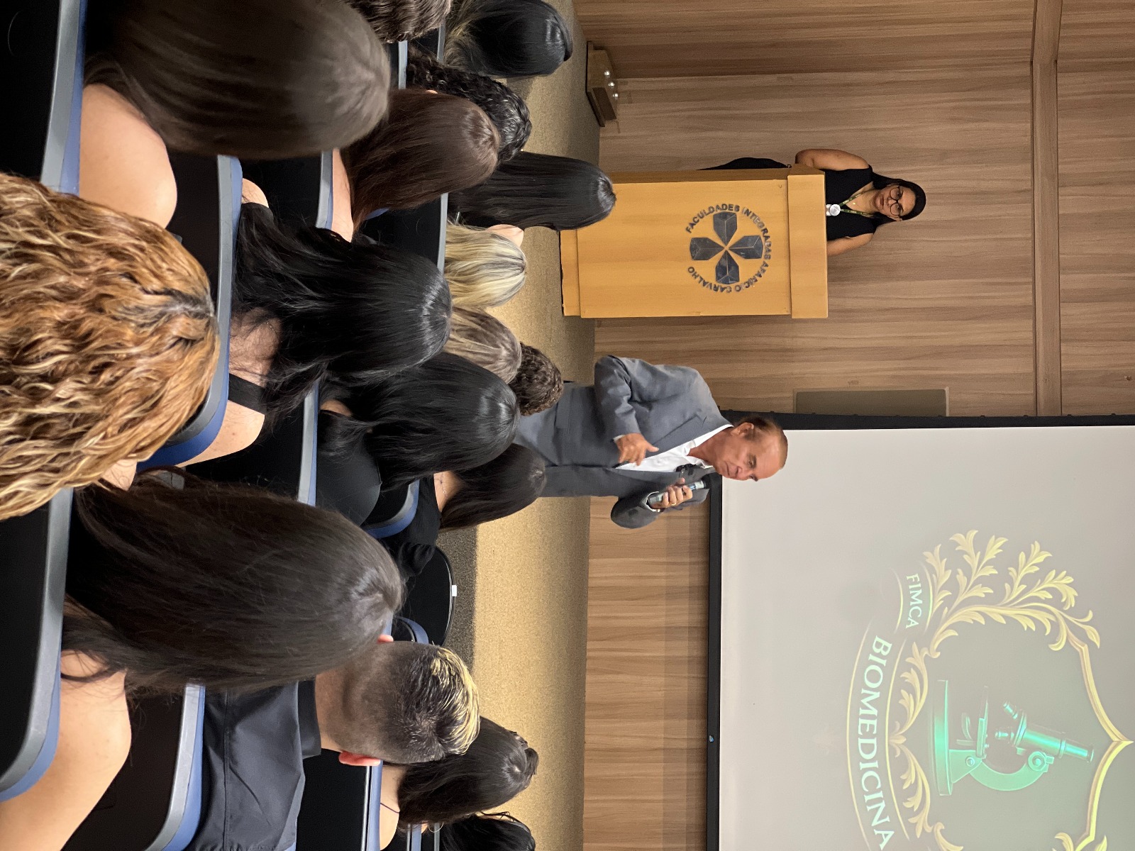 Em sua fala, Dr. Aparício Carvalho destacou a importância do momento para os acadêmicos e o papel fundamental da biomedicina na sociedade. “A Biomedicina é uma das grandes guardiãs da saúde pública. Ao vestir esse jaleco, vocês assumem um compromisso com a vida, com a pesquisa e com o conhecimento. Que cada passo dado aqui dentro seja guiado pela ética, pela responsabilidade e pelo amor à profissão”, afirmou.