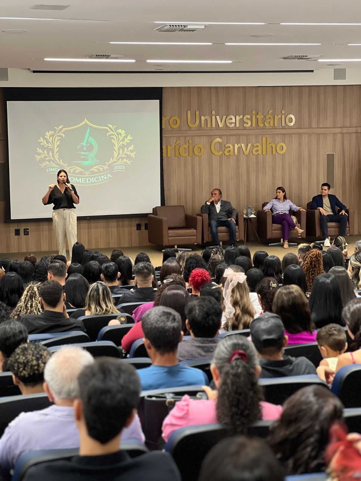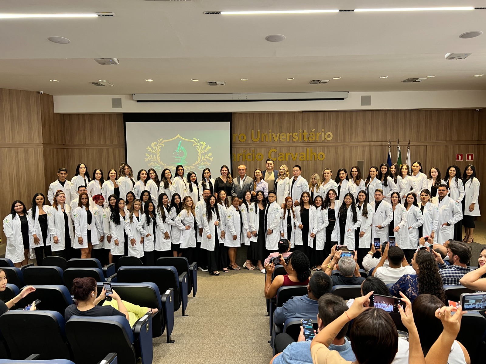 Na manhã de sábado, 10 de maio, o auditório Dra. Maria Silvia Carvalho recebeu mais uma celebração significativa para a comunidade acadêmica: a Cerimônia do Jaleco do curso de Biomedicina do Centro Universitário Aparício Carvalho – FIMCA. O evento, marcado por emoção e simbolismo, reuniu acadêmicos, familiares e autoridades da instituição para celebrar o início de uma trajetória repleta de descobertas, responsabilidade e compromisso com a ciência.