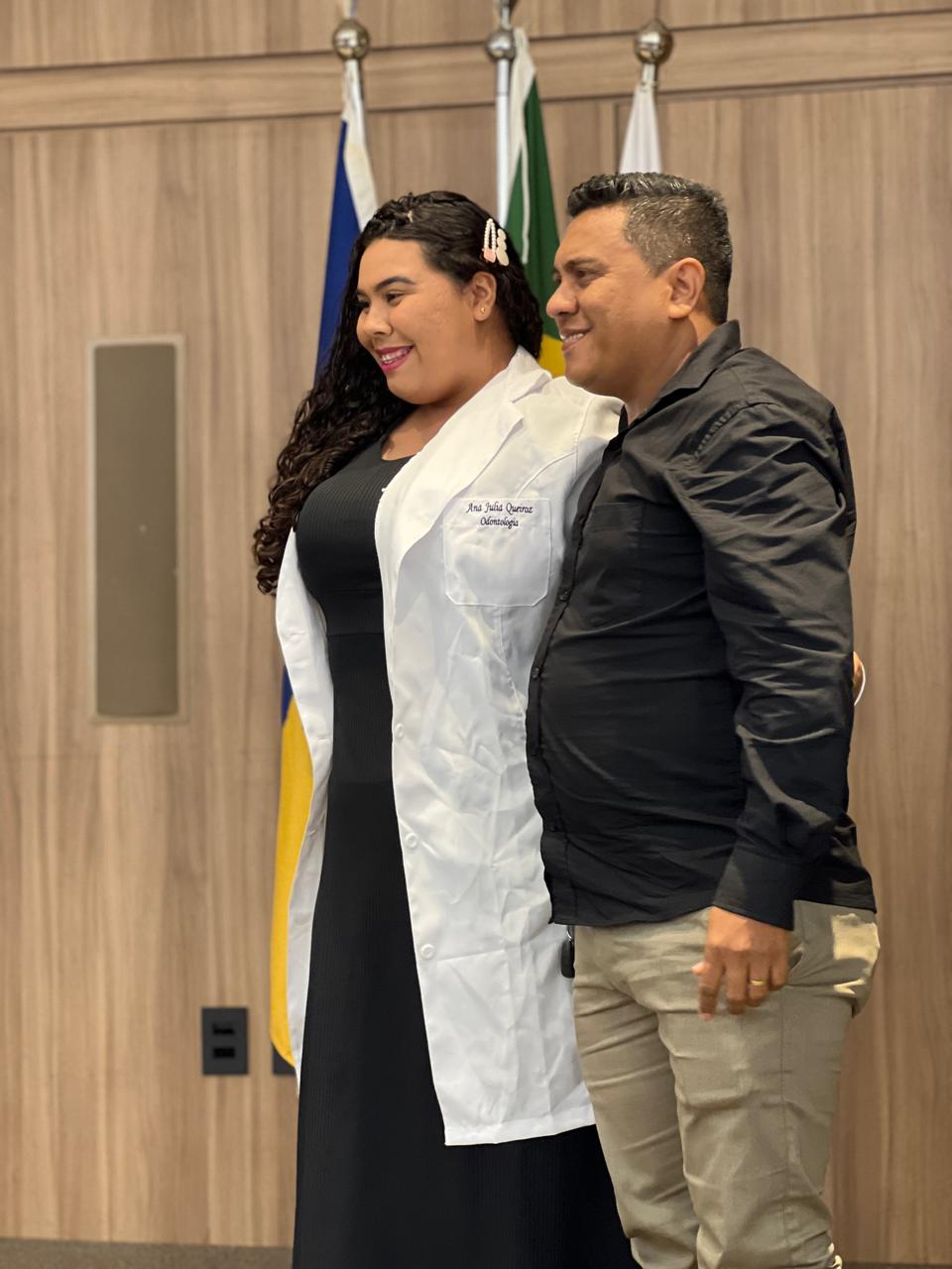 A cerimônia celebrou o início das atividades práticas dos futuros cirurgiões-dentistas, simbolizando o comprometimento com a profissão, a ética e o cuidado com a saúde bucal da população. O jaleco, peça fundamental da identidade do profissional da saúde, foi entregue aos estudantes como marco do início de uma nova fase em sua formação.