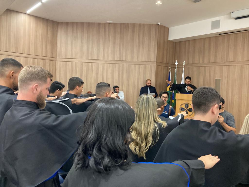 Após os juramentos, a Dra. Maria Silvia fez a concessão de grau aos acadêmicos e os coordenadores dos respectivos cursos fizeram a entrega dos canudos. Também foram homenageados os primeiros lugares de cada turma. Houve os discursos dos coordenadores, bem como da Dra. Nelice Batistelli. O encerramento da cerimônia foi feito pela Dra. Maria Silva, desejando sucesso aos novos profissionais.