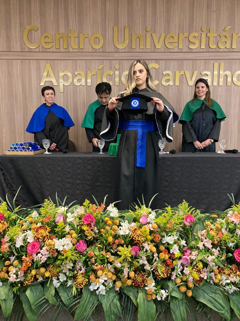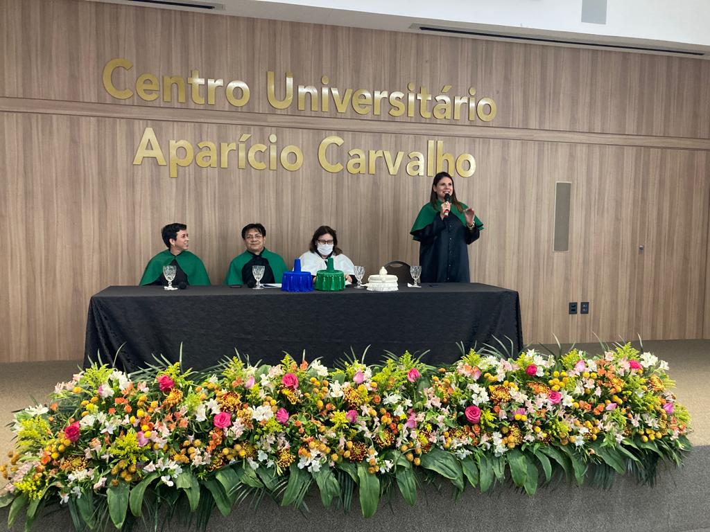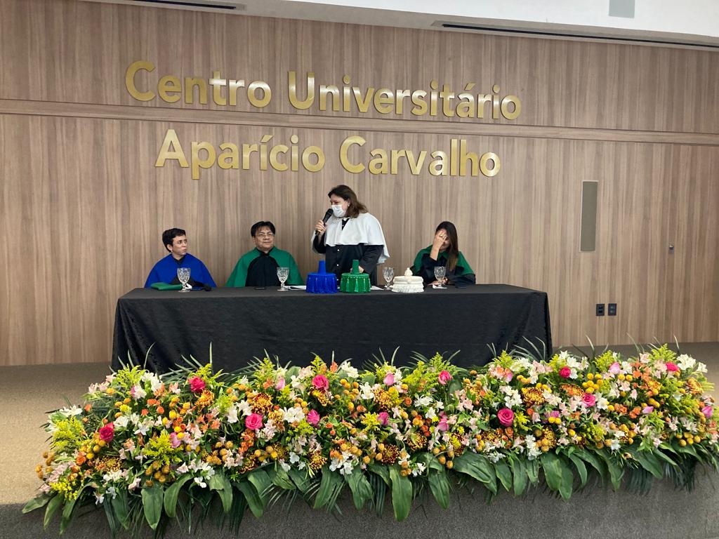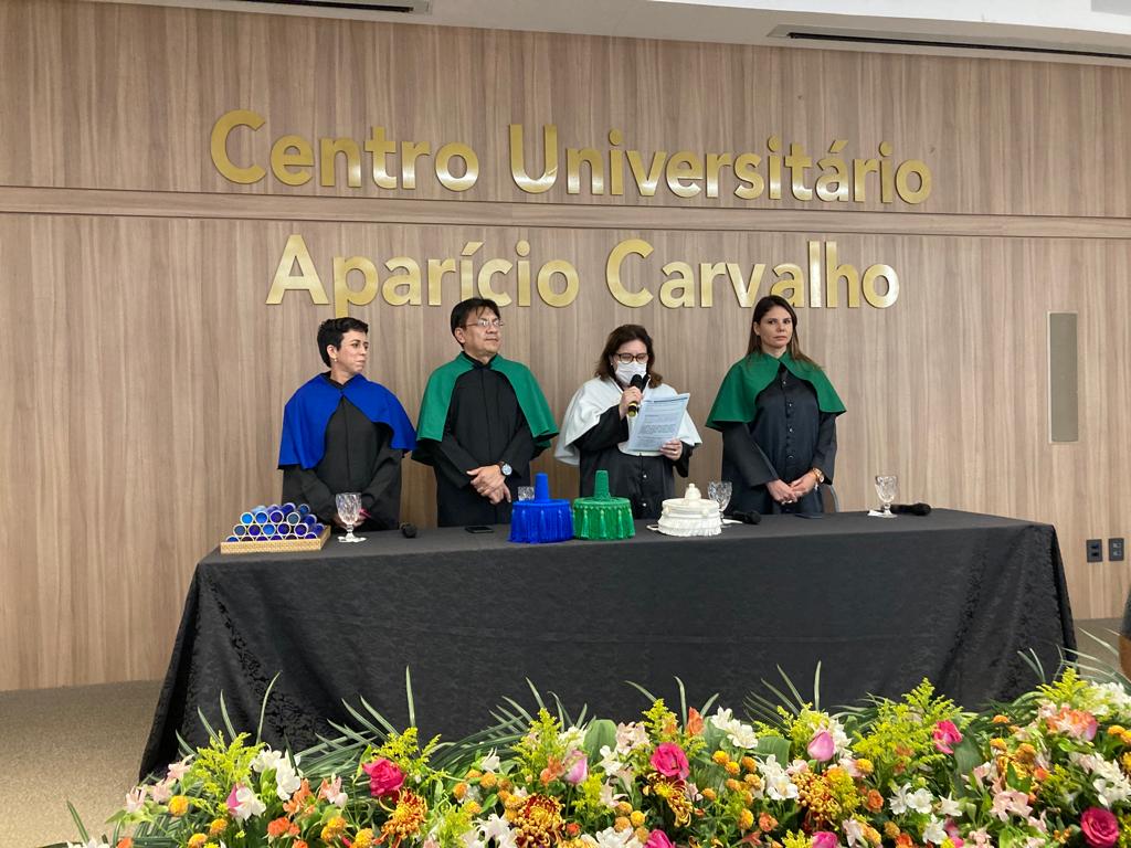 Nesta quinta (18), aconteceu a cerimônia de Colação de Grau dos cursos de Agronomia e Zootecnia do Centro Universitário Aparício Carvalho – FIMCA. O evento contou com a participação da Diretora Geral Dra. Maria Silvia Fonseca Ribeiro Carvalho de Moraes, da Diretora Acadêmica Dra. Nelice Batistelli, e da coordenadora dos cursos de Agronomia e Zootecnia Ana Emília Tavares.