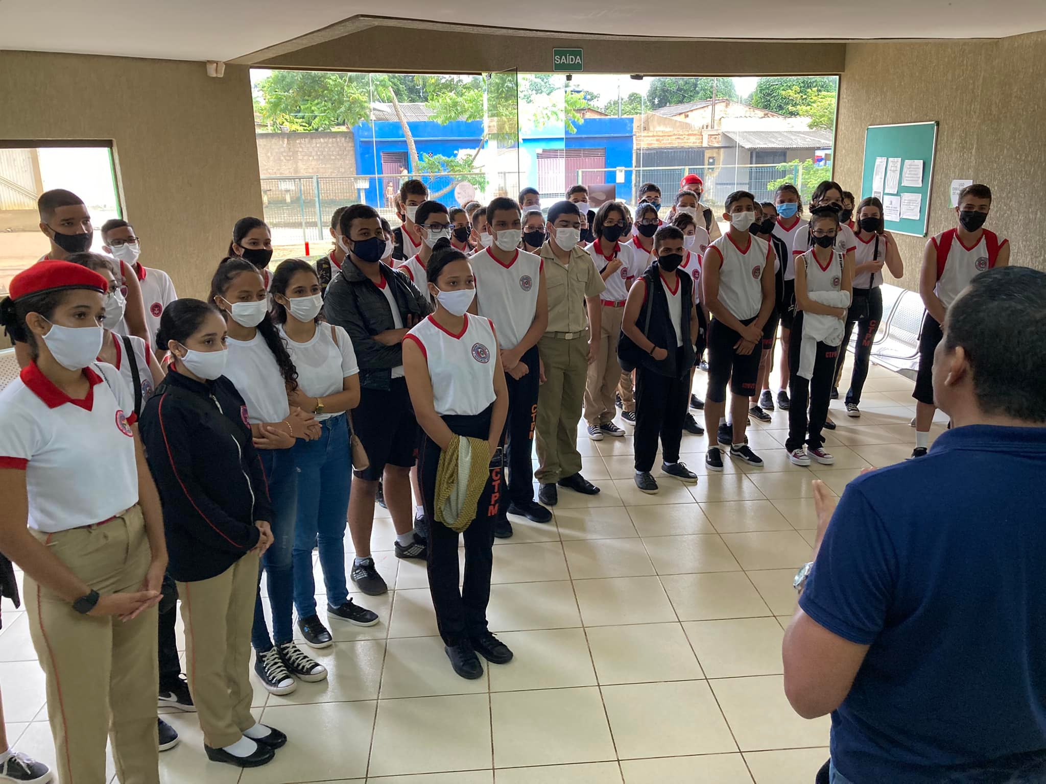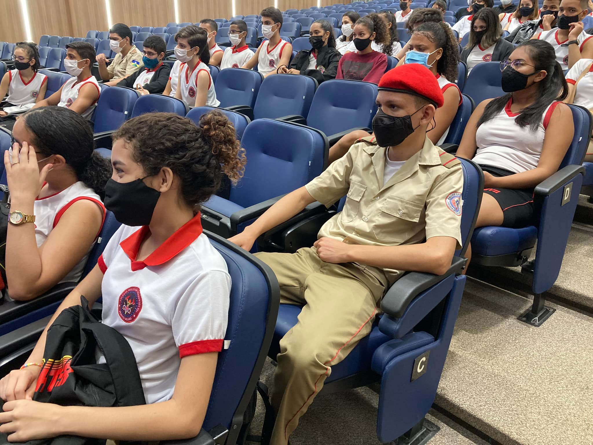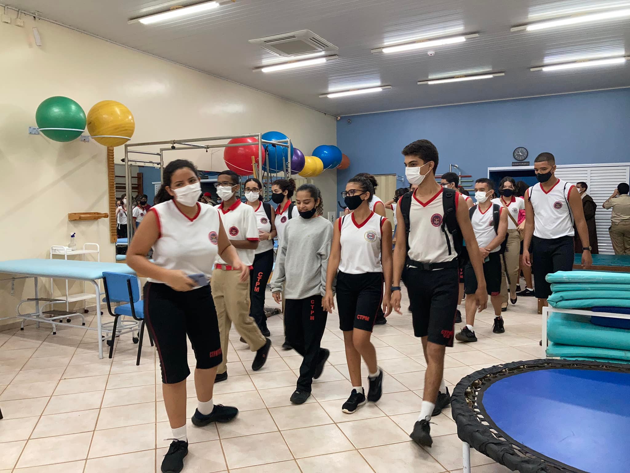 Alunos do Colégio Tiradentes da Polícia Militar do Estado de Rondônia – CTPM-UNIDADE I, turma do professor Marcos Gonçalves, visitam a IES nesta sexta-feira (01), os mesmos foram recepcionados no Anfiteatro da Instituição onde tiveram a oportunidade de esclarecer dúvidas sobre os mais de 40 cursos, dentre eles o curso de Terapia Ocupacional com uma breve palestra da Professora Elisete Moreira, e do curso de Fonoaudiologia com a aluna Débora, teve sorteio de brindes para nossos visitantes.
