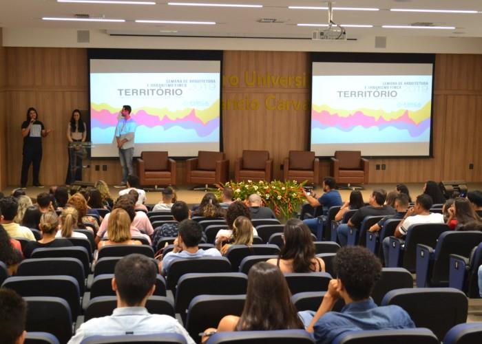 Começou nesta ultima segunda-feira (11) a semana de Arquitetura e Urbanismo no Centro Universitário Aparício Carvalho (FIMCA). Durante a solenidade de abertura professores e alunos puderam assistir a um vídeo que mostrou a trajetória dos acadêmicos desde o início do curso, mostrando viagens, trabalhos, prêmios e muito mais. Durante toda a semana, além de algumas palestras, também acontece uma exposição dos acadêmicos espalhada por vários pontos do Centro Universitário. A exposição conta com Maquetes, cadeiras, poltronas e artes visuais. Confira um pouco mais da Semana de Arquitetura e Urbanismo em nossa galeria de fotos: