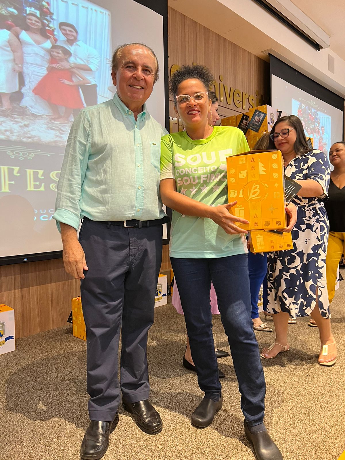 Em seu emocionante discurso de agradecimento aos trabalhos da equipe durante o ano, o diretor Aparício Carvalho destacou a importância do trabalho conjunto para o sucesso da instituição, ressaltando o comprometimento e a dedicação de cada colaborador. “É com imensa gratidão que entregamos estas cestas de Natal a vocês, que fazem parte da família do Grupo Educacional Aparício Carvalho. Este é um momento para celebrar não apenas as festividades, mas também os laços que nos unem como uma equipe dedicada e comprometida com a educação de excelência.”