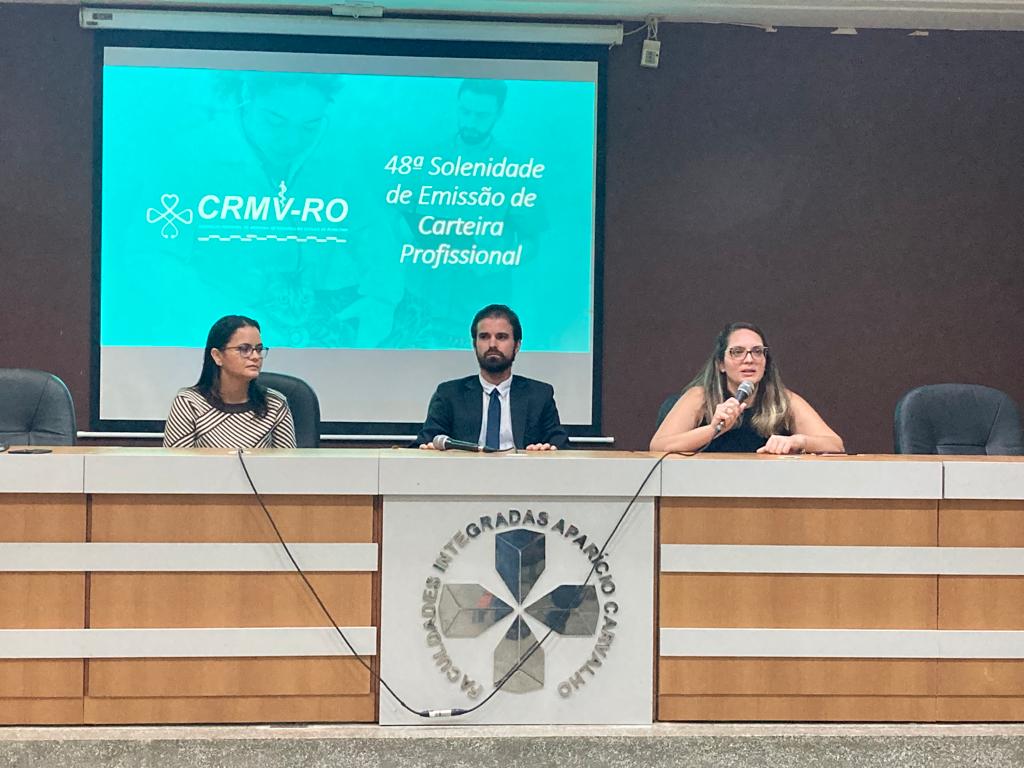 Nesta quarta-feira (16), os novos graduados dos cursos de Medicina Veterinária e Zootecnia do Centro Universitário Aparício Carvalho – Fimca, participaram da 48ª Solenidade de Emissão de Carteira Profissional em parceria com o Conselho Regional de Medicina Veterinária do Estado de Rondônia (CRMV-RO).