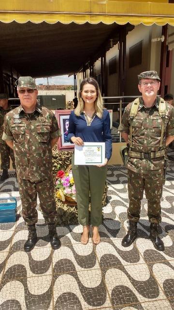 Tal honraria é concedida a civis e militares que colaboram com as Missões realizadas pelo Exército Brasileiro. E através da coordenação do curso de Nutrição, neste ano Bruna ministrou uma palestra durante Adestramento e Preparação dos Integrantes do Serviço de Aprovisionamento para apoio logístico às operações da 17ª BDA.