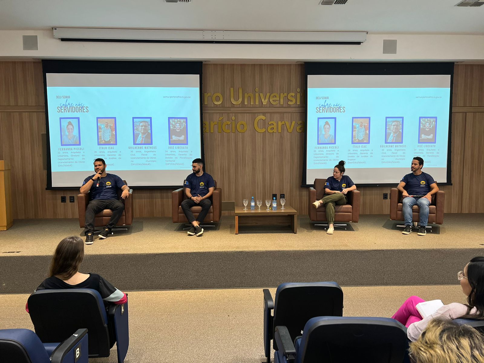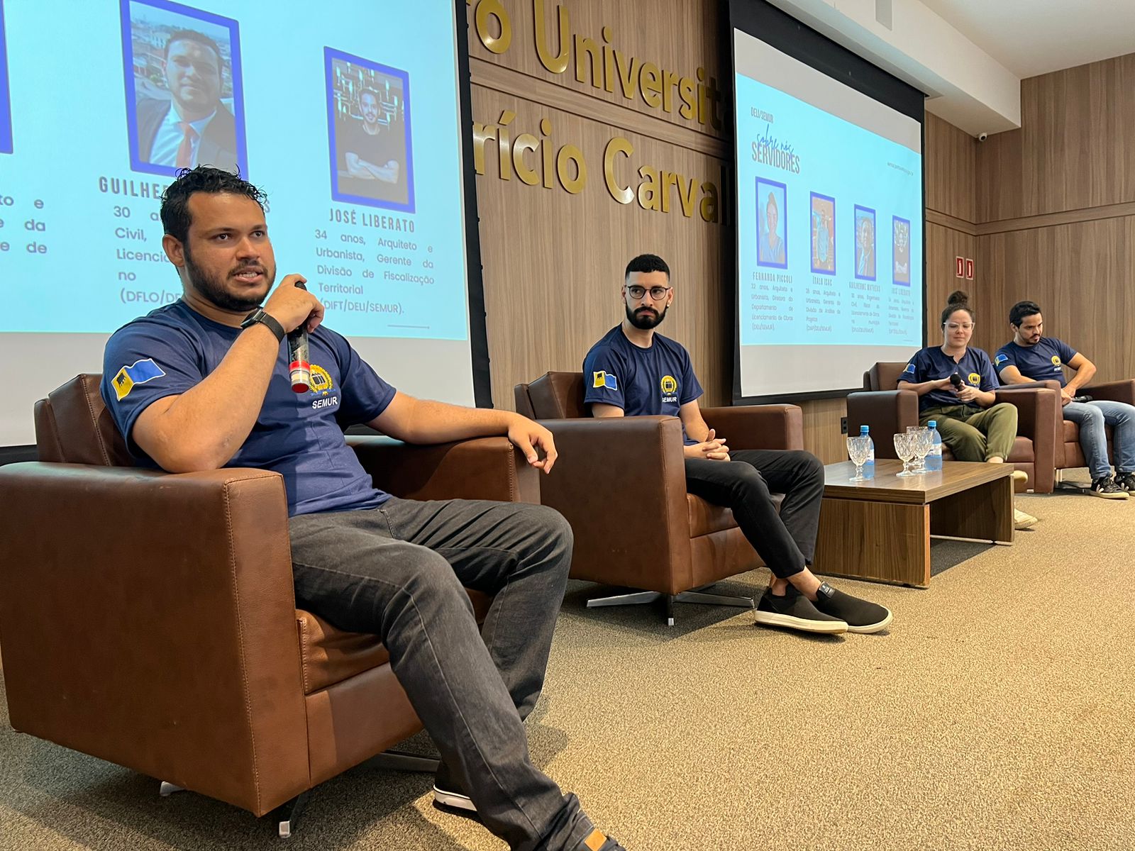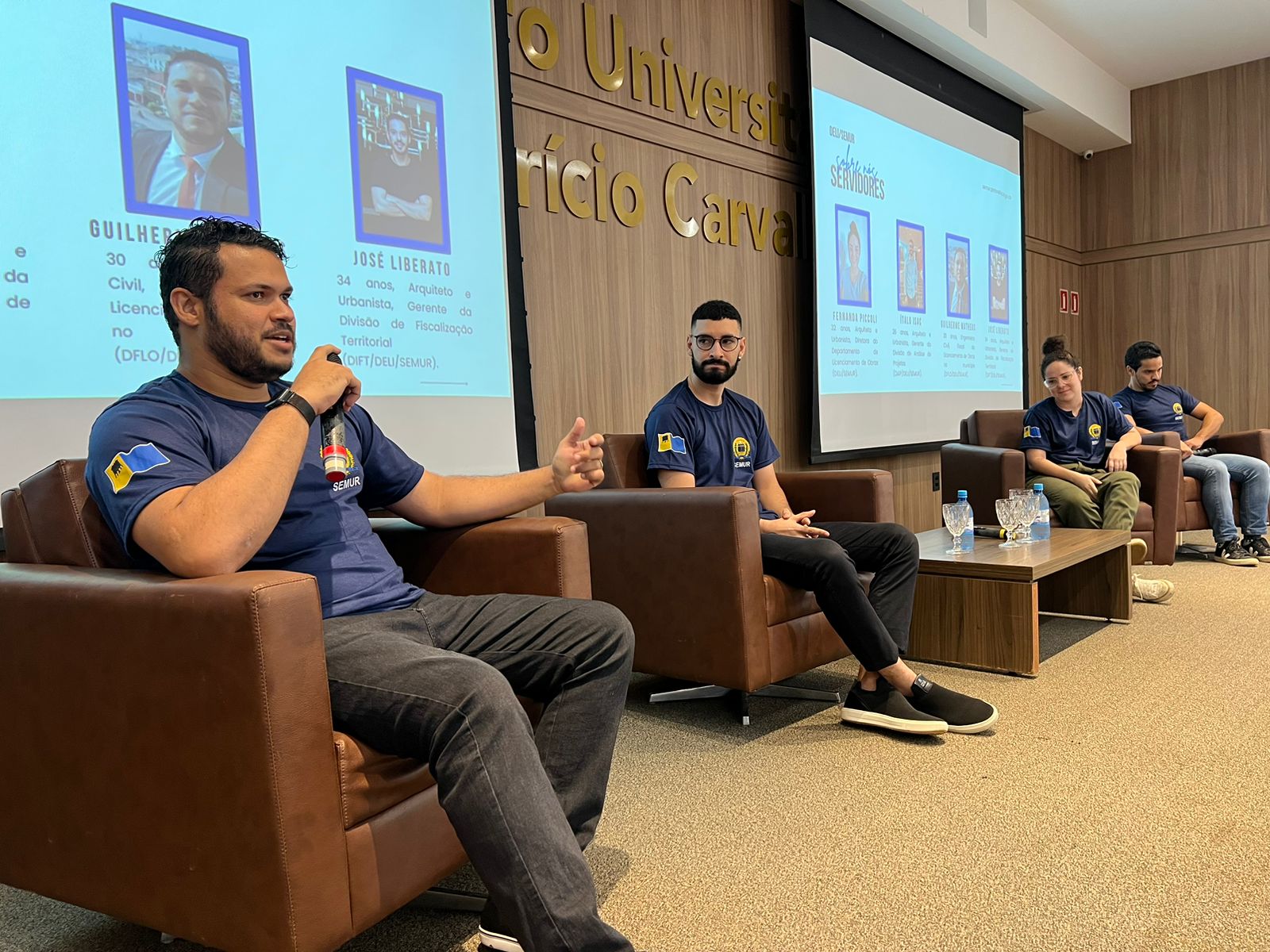 A coordenadora do curso de Arquitetura e Urbanismo, Carla Tames, também deu seu parecer sobre o encontro: “Estamos aqui nesse evento, em que o nosso conselho de arquitetos também esteve junto para fazer acontecer, e a gente convocou e convidou todos os nossos alunos e ex alunos. Enxergamos que isso é um tema crucial, que é o tema da aprovação de projetos, e não queremos que os nossos futuros arquitetos comecem a sua vida profissional cometendo algum erro. Pra gente, essa capacitação que vai ser dada é muito importante. Porque estamos apostando na formação desse profissional, desse futuro arquiteto, e queremos que, quando ele sair daqui ele comece a projetar e ter um início saudável, de excelência, com tudo regularizado”.