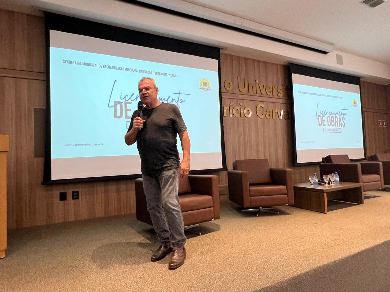“Estamos participando de mais um evento promovido pelo CAU-RO em parceria com as Faculdades Integradas Aparício Carvalho. Hoje vamos ter uma capacitação com profissionais para elaboração de projetos que são novas especificidades de projetos online aqui no município de Porto Velho. A gente pretende estender essa campanha também para o interior. É importante que os profissionais sejam capacitados para que eles possam atender essa nova demanda, evitando retrabalhos, evitando erros, e a gente pode fazer um trabalho muito melhor pela arquitetura em nosso estado”, disse Antônio Balau, presidente do Conselho Regional de Arquitetura e Urbanismo de Rondônia e coordenador adjunto do curso na FIMCA.