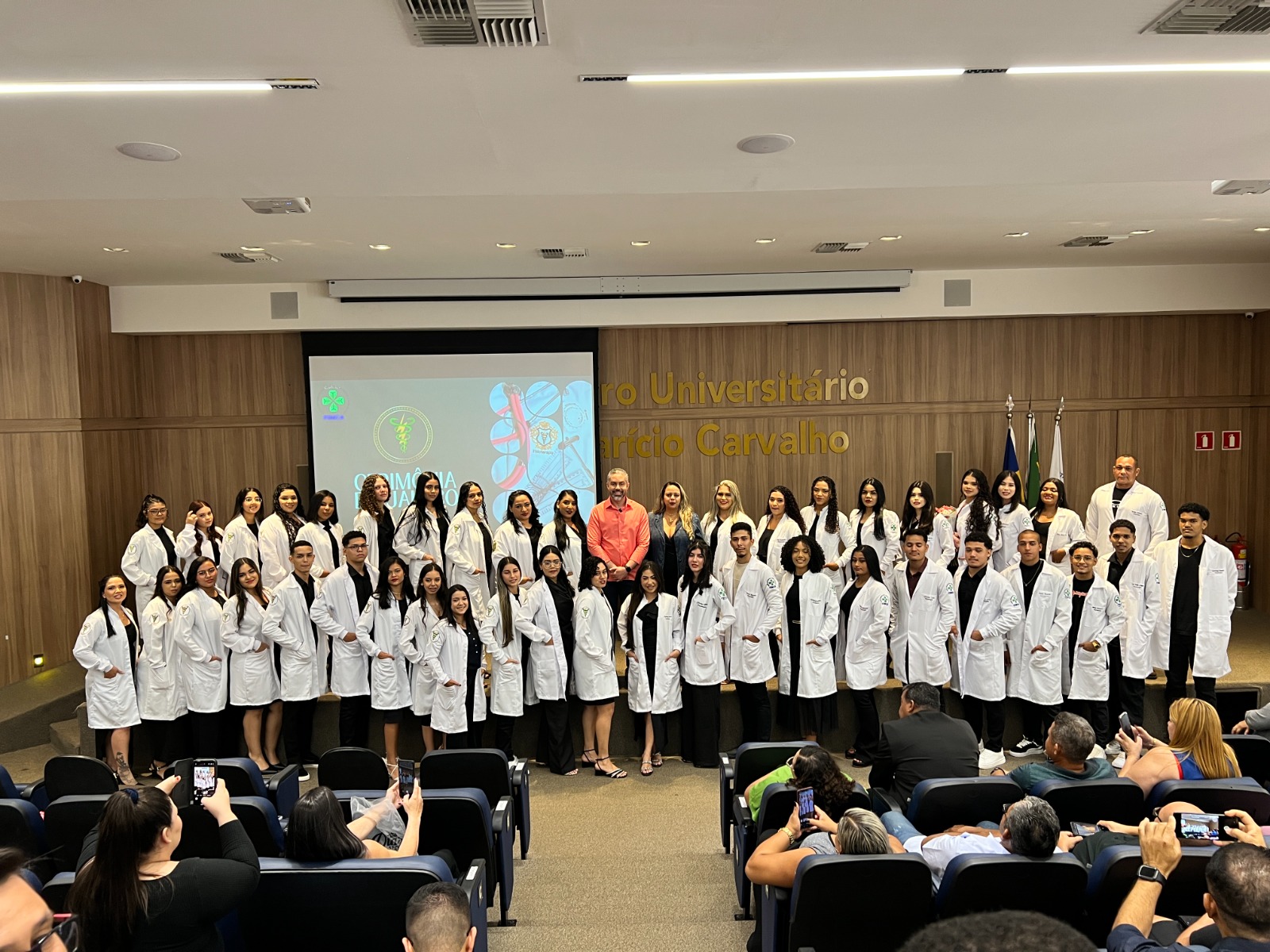 Na noite do dia 12 de maio, o auditório Dra. Maria Silvia Carvalho voltou a ser palco de um momento especial e cheio de simbolismo: a Cerimônia do Jaleco dos acadêmicos do curso de Fisioterapia do Centro Universitário Aparício Carvalho – FIMCA. O evento marcou oficialmente o início da jornada acadêmica dos futuros fisioterapeutas, reforçando o compromisso com a ciência, a ética e o cuidado com o próximo.