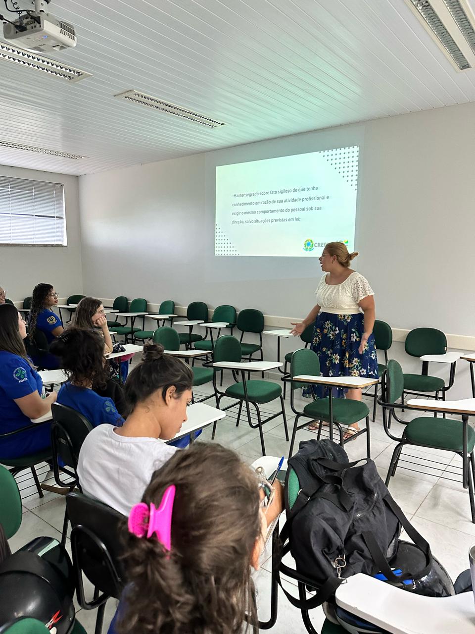 Na ocasião foram abordados os temas sobre e ética profissional, regulamentação da atuação acadêmica em estágio supervisionado em relação ao Conselho profissional e orientação sobre a atuação acadêmica irregular.