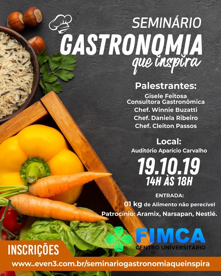 O Curso tecnólogo em gastronomia do Centro Universitário Aparício Carvalho (FIMCA), promoveu neste sábado dia (19) o Seminário “Gastronomia que Inspira” com o objetivo de disseminar uma reflexão aprofundada sobre oportunidades criativas e Inovadoras para o mercado gastronômico.