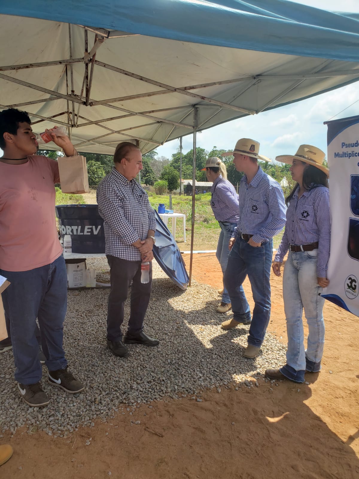 A acadêmica Cátia explicou sobre a produção de fertilizante natural: “nós montamos um sistema de multiplicação de bactérias psedomonas fluorescens, que são bactérias produzidas on farm, ou seja, na própria fazenda, pra fazer os biofertilizantes. Essas bactérias são responsáveis por fazer a biodegradaçãodos estercos pra montar os biofertilizantes, utilizando açúcares, água e a bactéria”.