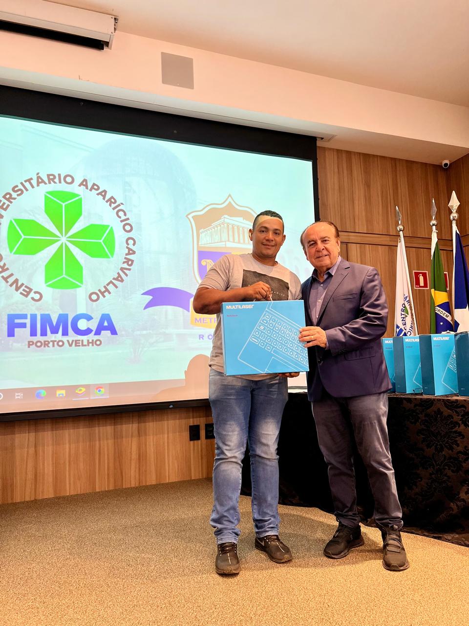 Nesta sexta-feira, 17 de maio, os alunos do Centro Universitário Aparício Carvalho – FIMCA, EAD FIMCA e Faculdade Metropolitana que ingressaram no Programa de Inclusão Social Universidade para Todos – FACULDADE DA PREFEITURA foram recebidos pelo Diretor Presidente Dr. Aparício Carvalho e Vice-diretor da Faculdade Metropolitana, Prof. Luiz Ibanor Nunes na entrega de notebooks.