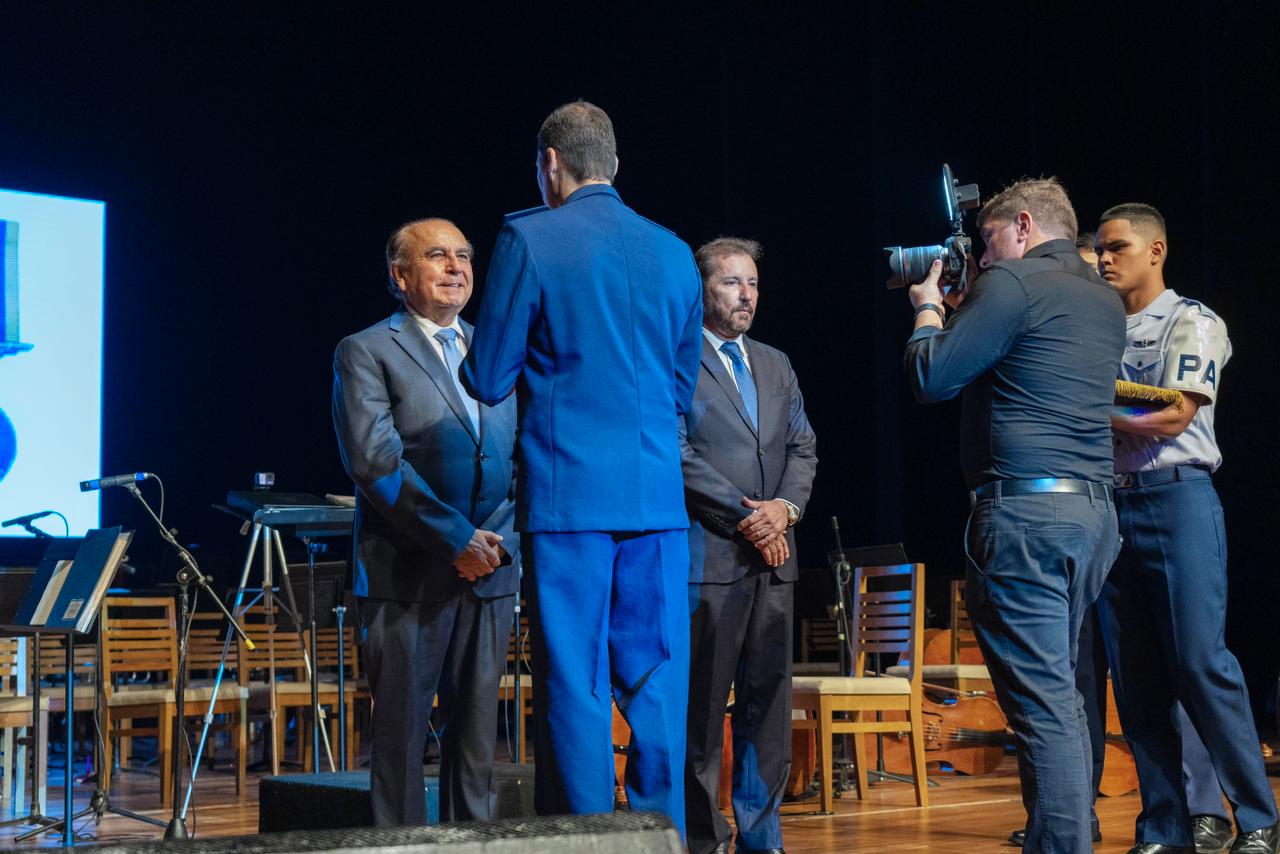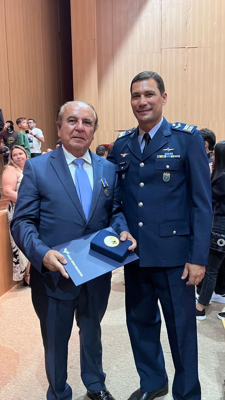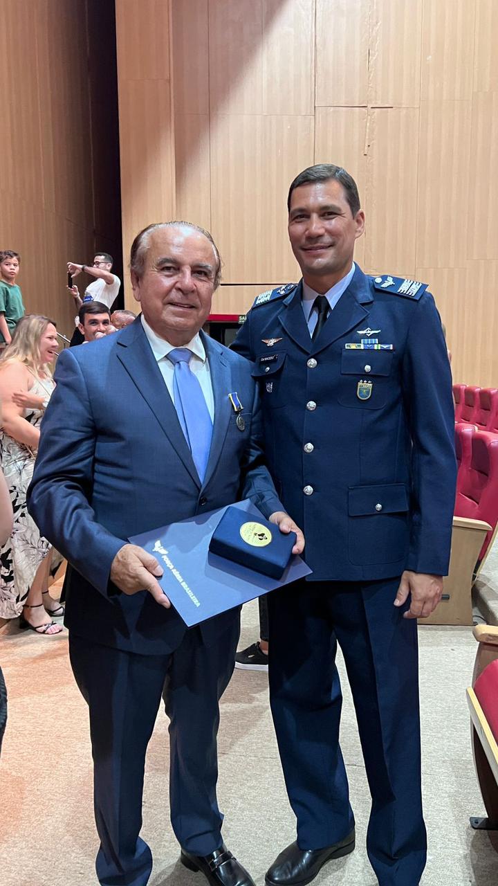 Na última quinta-feira, 5 de outubro, o Teatro Municipal Palácio das Artes, em Porto Velho, foi palco da cerimônia em que a Força Aérea Brasileira (FAB) concedeu a medalha Mérito Santos-Dumont ao psiquiatra, empresário e reitor do Grupo Educacional Aparício Carvalho, Dr. Aparício Carvalho de Moraes. A honraria é um reconhecimento aos destacados serviços prestados à Aeronáutica e foi criada para celebrar os 150 anos de Alberto Santos-Dumont, o brasileiro conhecido como o “pai da aviação”.