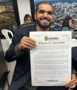 Na última segunda-feira, 20 de outubro, o cirurgião-dentista Luiz Fernando Rodrigues Alves, egresso do curso de Odontologia do Centro Universitário Aparício Carvalho – FIMCA, recebeu uma Moção de Aplausos da Câmara Municipal de Cuiabá (MT) em reconhecimento à sua destacada trajetória profissional e contribuição à sociedade por meio da Odontologia.