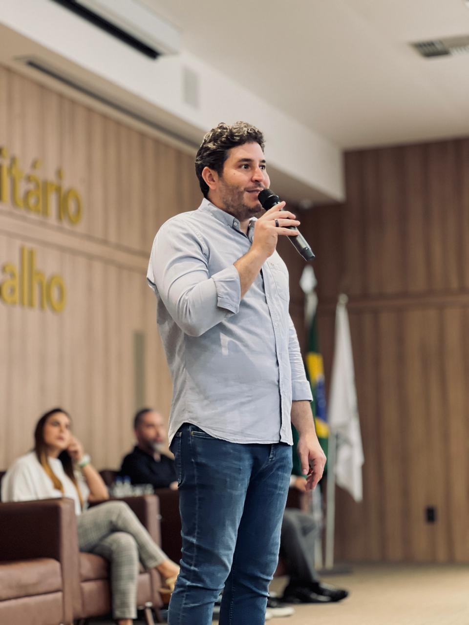 Compuseram a mesa de honra a Magnífica Reitora da FIMCA, Dra. Mariana Carvalho; o Vice-Reitor e Deputado Federal, Dr. Maurício Carvalho; o Coordenador Pedagógico, Fernando Ramalho; e o Coordenador do Curso de Direito, César Jacques.