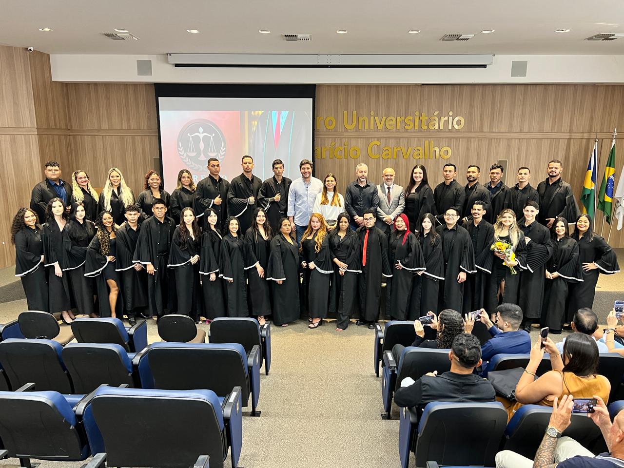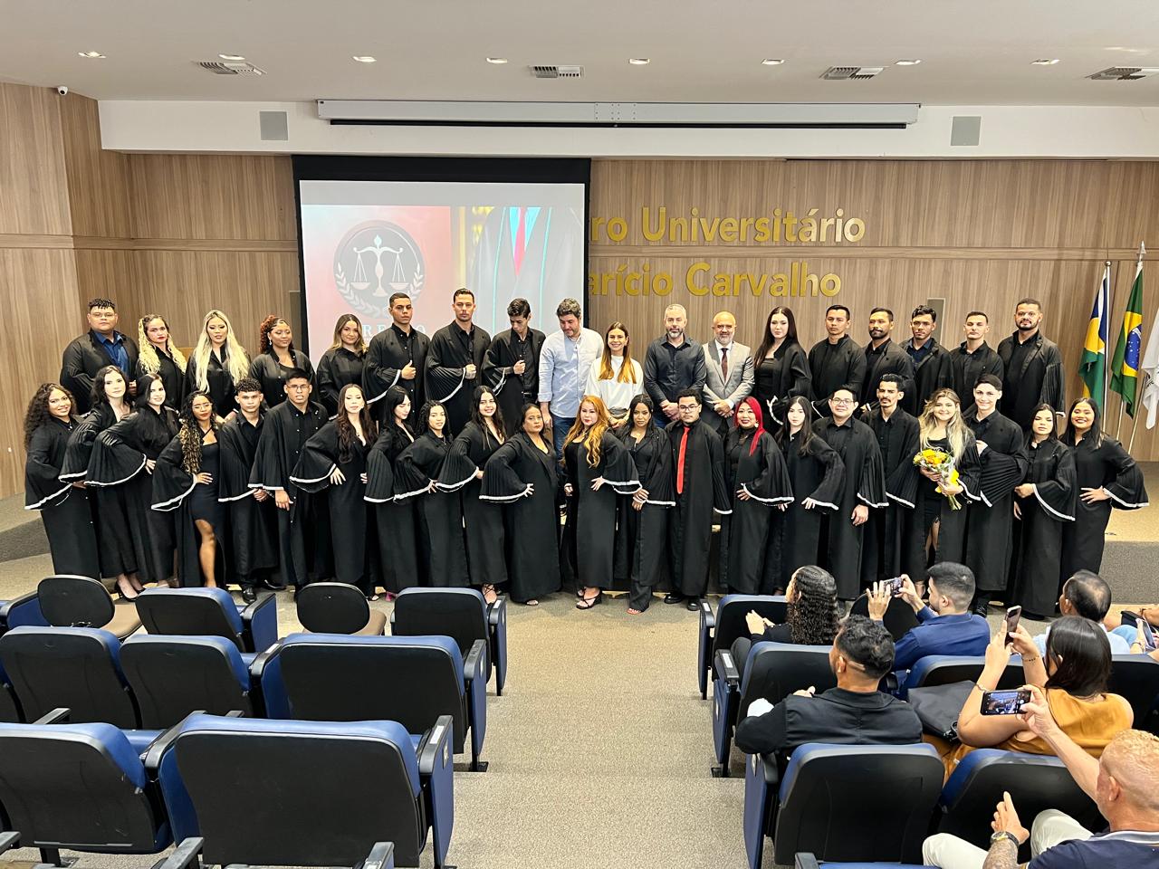 Em seu pronunciamento, a Reitora destacou a importância da formação jurídica e o compromisso social dos futuros profissionais: “A beca é um símbolo de superação, de esforço e, acima de tudo, de responsabilidade. Que cada um de vocês leve consigo os valores construídos ao longo do curso e utilize o conhecimento adquirido para promover justiça e transformação social” — declarou a Dra. Mariana Carvalho.
