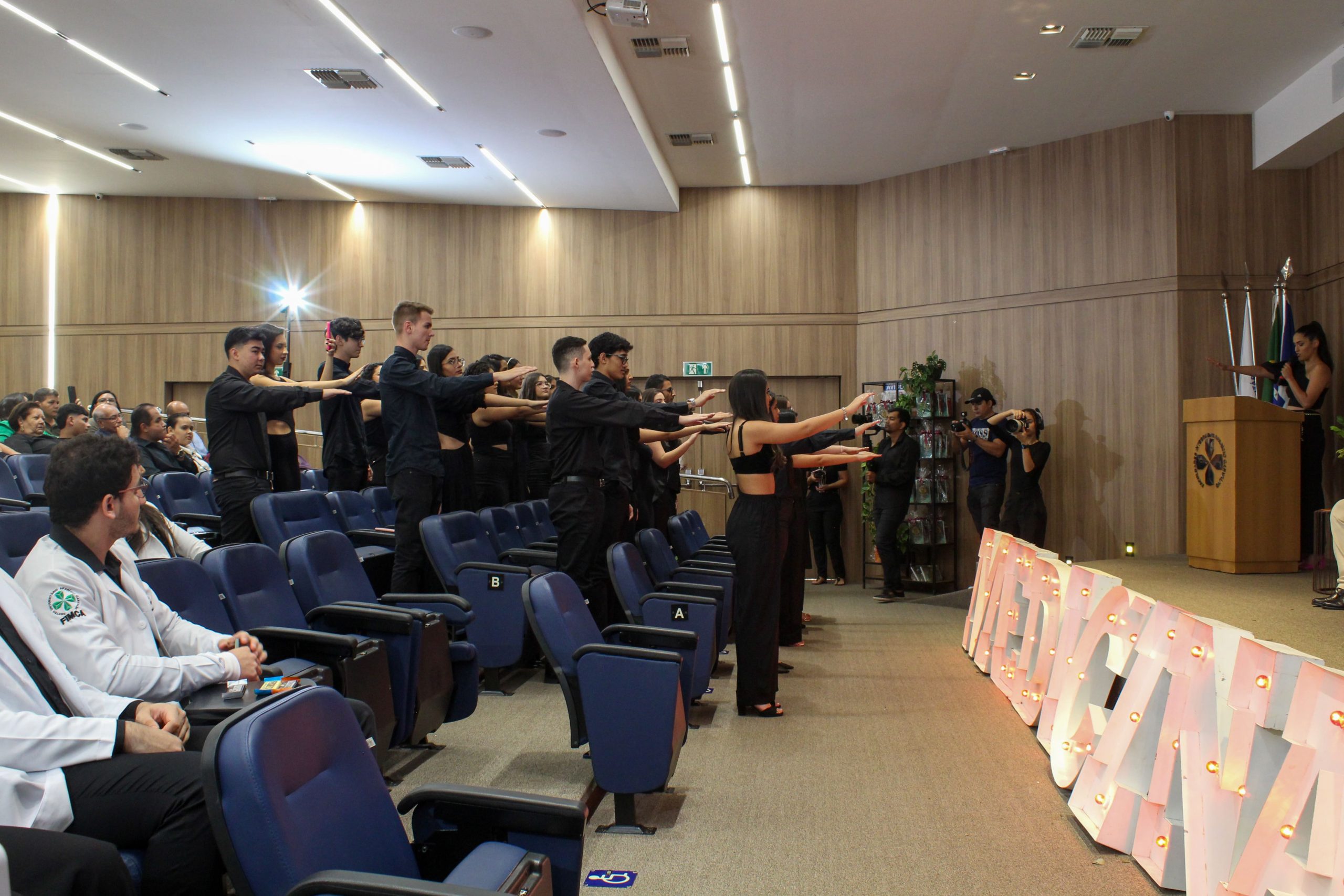 Na noite de terça-feira (29), o Anfiteatro Maria Silvia do Centro Universitário Aparício Carvalho – FIMCA, foi palco de um evento repleto de emoções e significado: a Cerimônia do Jaleco para as turmas TXX C e D do curso de Medicina.