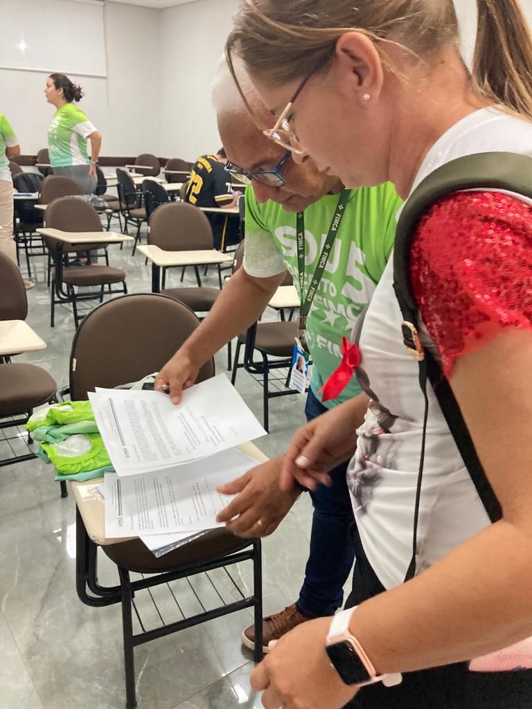 A entrega das camisetas, realizada antes do evento, foi um momento de confraternização e união. Os acadêmicos se reuniram nas salas designadas, conforme os cursos, para receberem seus uniformes, criando uma identidade visual que fortaleceu o espírito de equipe.