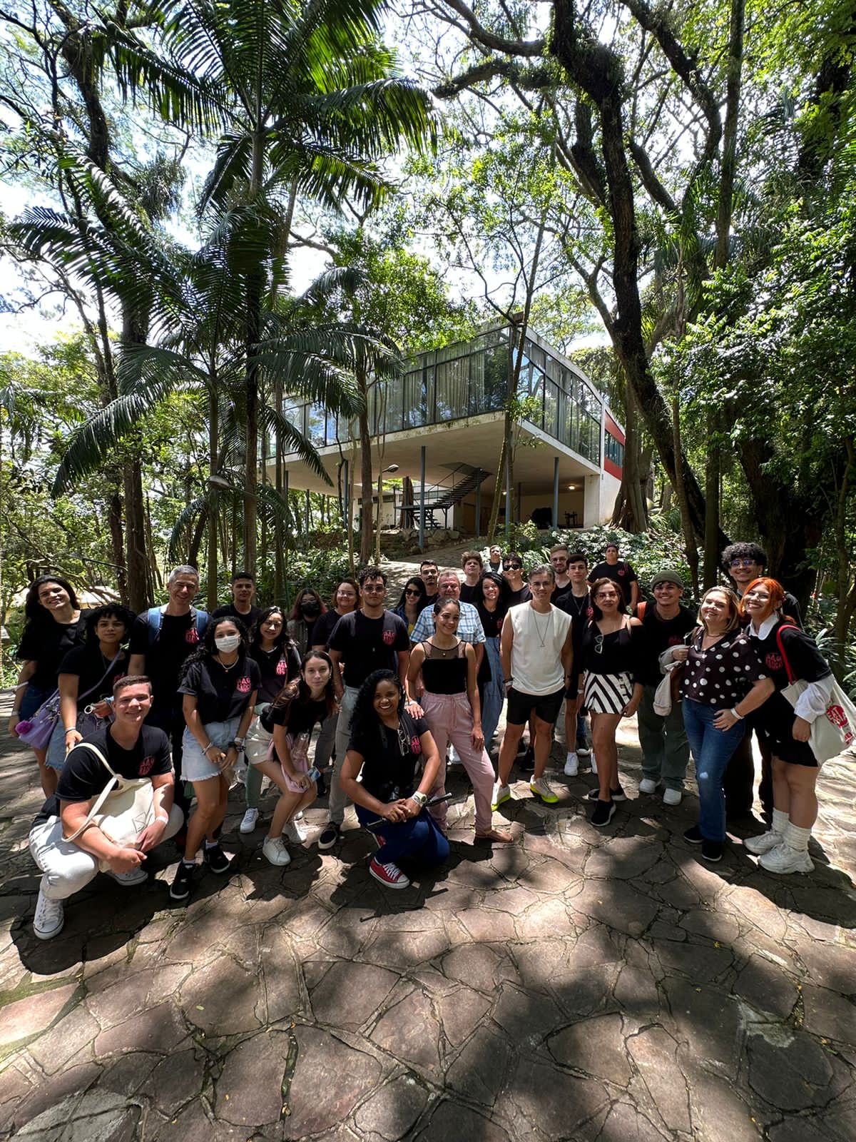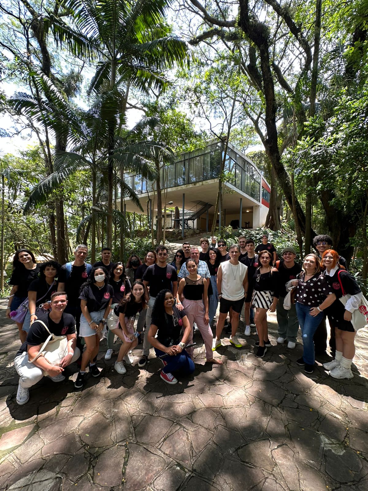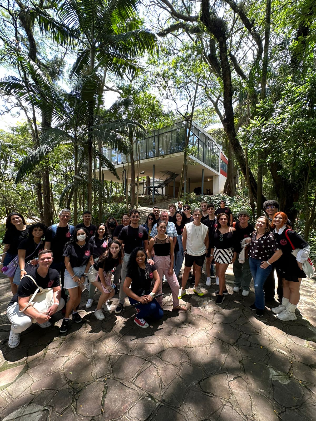 Em seguida, nosso destino foi uma das casas notáveis da arquitetura modernista: a Casa de Vidro, projeto e residência da arquiteta Lina Bo Bardi. Um dos pontos altos da programação, imensa em um terreno de 9 mil metros quadrados no Morumbi, A Casa de Vidro impressionou a todos com sua arquitetura e acervo de obras de arte!