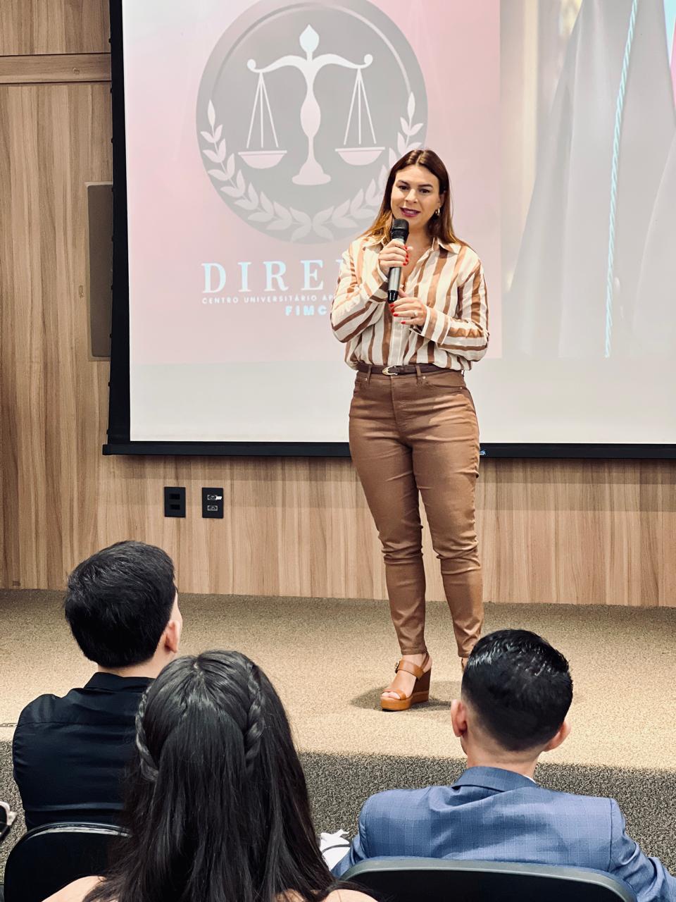 Estiveram presentes na condução da cerimônia o Reitor Emérito da FIMCA, Dr. Aparício Carvalho, a Magnífica Reitora, Dra. Mariana Carvalho, a Diretora Acadêmica, Dra. Nelice Batistelli, e o Coordenador do curso de Direito, Prof. Cesar Jacques.
